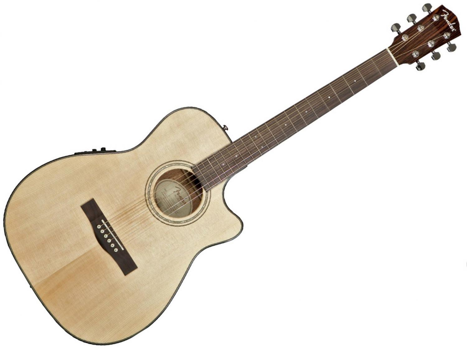 La Fender CF-140SCE ha un profilo cutaway "folk" più piccolo ed una spaziatura perfetta per principianti e flatpickers. Non lasciatevi ingannare dalle sue dimensioni perchè proietta un suono abbastanza pieno, ricco e risonante da riempire una intera sala grazie al suo top in abete massello, un bracing quartersawn X scalloped. Un manico in mogano satinato con trussrod a doppia azione rendono facile e fluido suonare una CF-140SCE. Altre caratteristiche includono fondo e fasce in mogano, rosetta in madreperla e paletta con logo intarsiato, ponte in palissandro con selletta compensata Graphtech Nubone, intarsi della tastiera più piccoli (3mm), paletta in palissandro (impiallacciato) e sistema di pickup Fishman Presys con preamplificatore attivo ed accordatore.