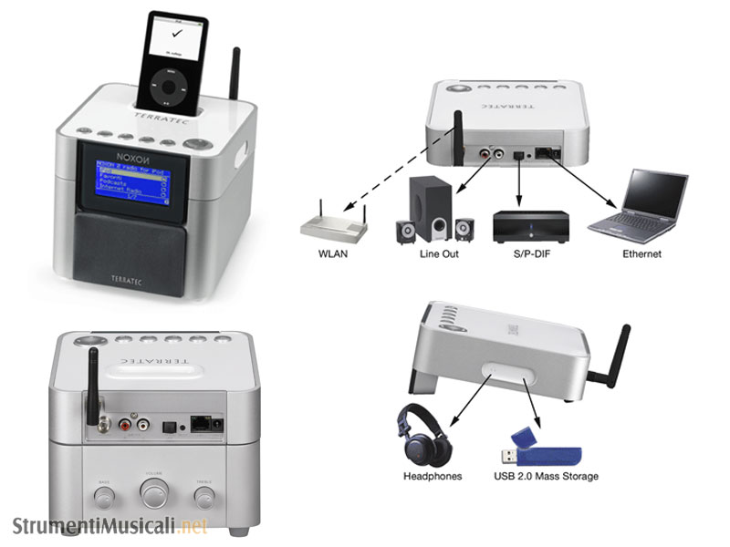 NOXON 2 radio iPod è un player audio multifuzioni, adatto in qualsiasi ambiente " casa, ufficio, Hotel, PUB, giardino, sala di attesa, etc..". Ovunque c'è la necessità di ricevere o diffondere audio ed è presente un accesso Wireless, Ethernet o Internet. NOXON 2 per semplicità, mobilità e flessibilità, permette di effettuare streaming audio o da PC tramite rete locale o direttamente da Internet.. Inoltre, NOXON 2 oltre a poter ricevere in streaming, può eseguire i brani memorizzati su Pen-driver o hard-disk tramite l'interfaccia USB, o i brani memorizzati su iPod tramite la docking-station posto sul NOXON. Il NOXON permette di ascoltare la raccolta di brani musicali in formato Mp3 e WMA9 con risoluzione max 320 Kbps, memorizzati su qualsiasi PC collegato in rete WLAN o Ethernet, rendendo il computer un JukeBox Virtuale, dove il limite di ascolto dei file audio è dovuto solo al limite del vostro Hard-Disk. Inoltre potete memorizzare i nomi dei vostri brani preferiti su NOXON per un successivo accesso immediato al server. Anche a PC spento NOXON 2 Audio, tramite la connessione Internet può accedere e ricevere migliaia di stazioni radio di tutto il mondo che trasmettono on-line e che fanno di Internet il loro mezzo privilegiato di diffusione. Il supporto D.R.M. 1.0 " Digital Rights Managements " assicura di poter riprodurre senza problemi i brani acquistati on-line con la protezione contro le copiature.