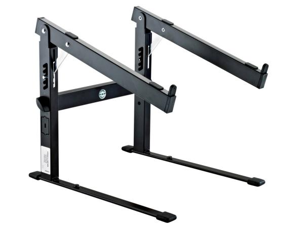 Questo supporto da tavolo pratico ed estremamente stabile è perfetto per computer portatili, sistemi per DJ e altre apparecchiature multimediali. I bracci di supporto possono essere inclinati molto rapidamente e facilmente di 33° in 5 step. Protezioni in gomma autoadesive proteggono le apparecchiature. Il supporto da tavolo ha un'altezza di 300 millimetri. C'è spazio sufficiente tra le sezioni della base per una unità aggiuntiva da 10" (battle mixer, etc).