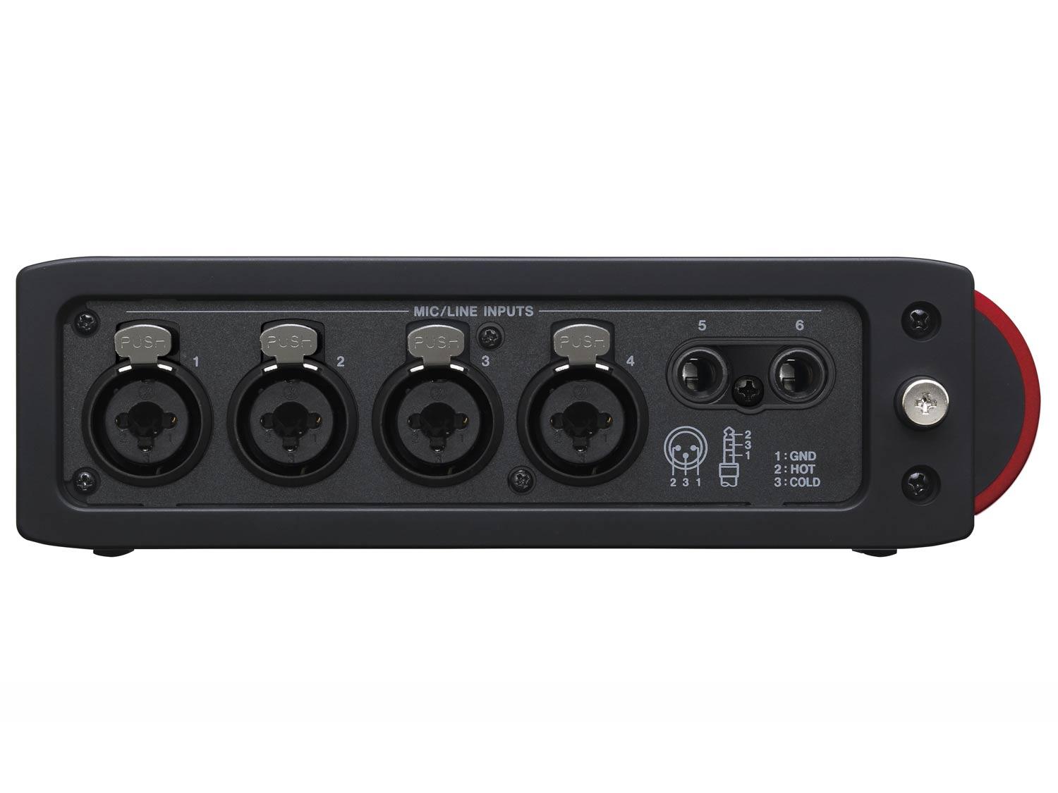 • 6 ingressi mic/line bilanciati (4 XLR/TRS connettori combo, 2 connettori TRS)