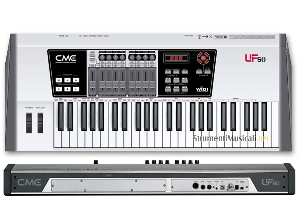 Le prime Master Keyboard controller "duplex wireless MIDI" al mondo. Le nuove UF sono la scelta migliore per le performance live, l'incredibile distanza massima di trasmissione di 80 Mt. , il potente software di correzione automatica delle note off vi renderanno liberi dalle restrizioni dei cavi MIDI. Le prime Master Keyboard controller "con slot di espansione multifunzionale" al mondo Le nuove CME serie UF hanno a bordo 3 slot di espansione, dove è possibile installare diverse tipologie di schede e trasformare la vostra master keyboard in una vera workstation All-In-One. Le nuove CME della serie UF sono le uniche master keyboard ad offrire lampossibilità di integrare registrazione audio, controller, sintesi e moduli sonori all'interno di un'unica soluzione. Oggi, molte case produttrici usano materiali plastici per fabbricare master keyboard risparmiando così sui costi di produzione, ma questo riduce anche la robustezza e l'estetica del prodotto. Le nuove CME UF alloggiano invece il loro cuore tecnologico dentro un corpo interamente in Alluminio, con un elegante colore argento, facilmente ci si innamorerà al primo incontro delle nuove UF.