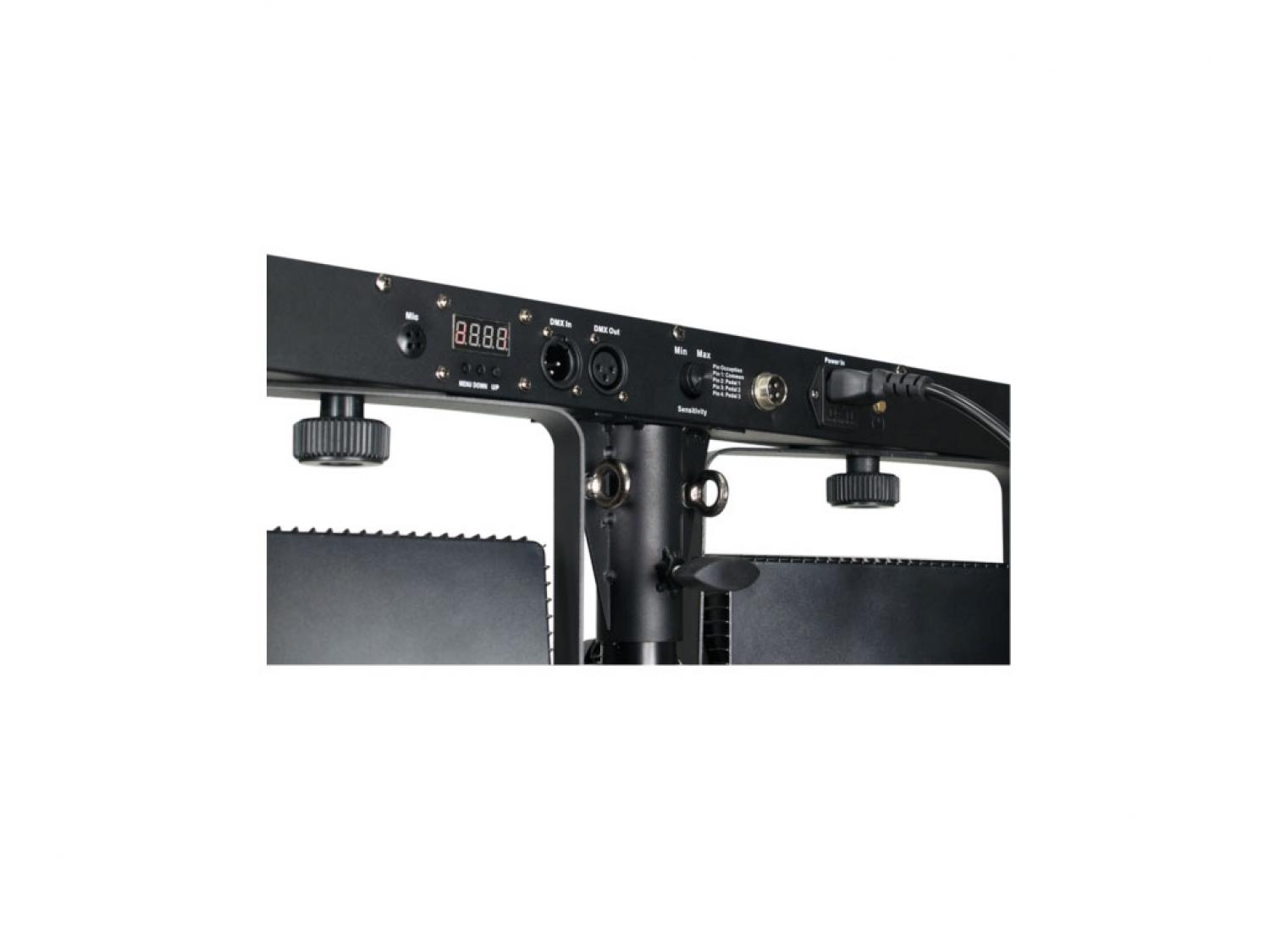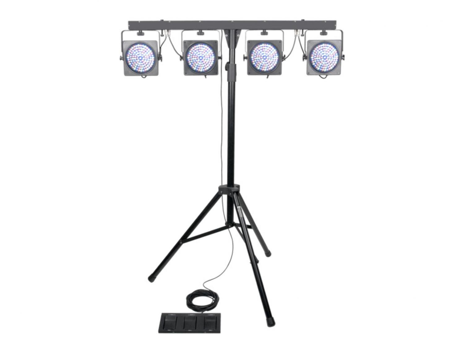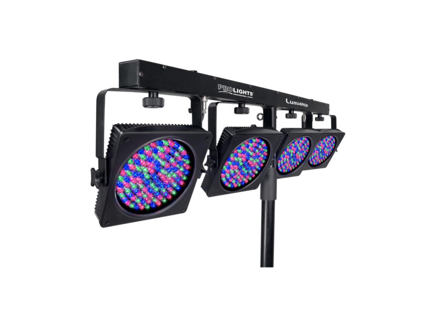 LUMI4RGB è un set di cambiacolori LED portabile Plug'n'Play per la riproduzione di giochi di luce in stage mobili e club. LUMI4RGB si compone di una barra luci con 4 proiettori a tecnologia LED, ciascuno dotato di 108 LED di colore Rosso, Verde, Blu. L'impiego della tecnologia LED consente la riproduzione di effetti suggestivi con cambiamenti di colore dinamici, sincronizzati e potenti. L'unità di alimentazione e di controllo è situata all'interno della barra porta fari, il sistema include controllo a pedali, stand tripode e comoda borsa per il trasporto.