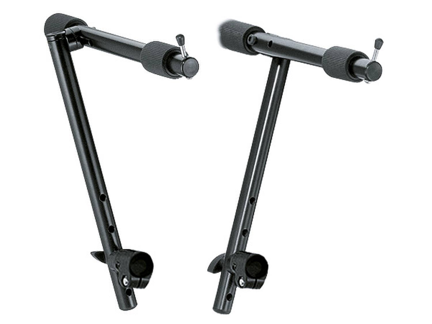 Stacker opzionale per i supporti K&M 18940 e 18990, completamente regolabile in altezza, profondità e inclinazione per adattarsi a vari tipi di strumenti. Interamente in metallo, rivestimento con verniciatura a polvere nera. Grandi pad per proteggere la tastiera dai graffi. I denti interamente in metallo dei dispositivi di blocco garantiscono la massima sicurezza con qualsiasi regolazione.