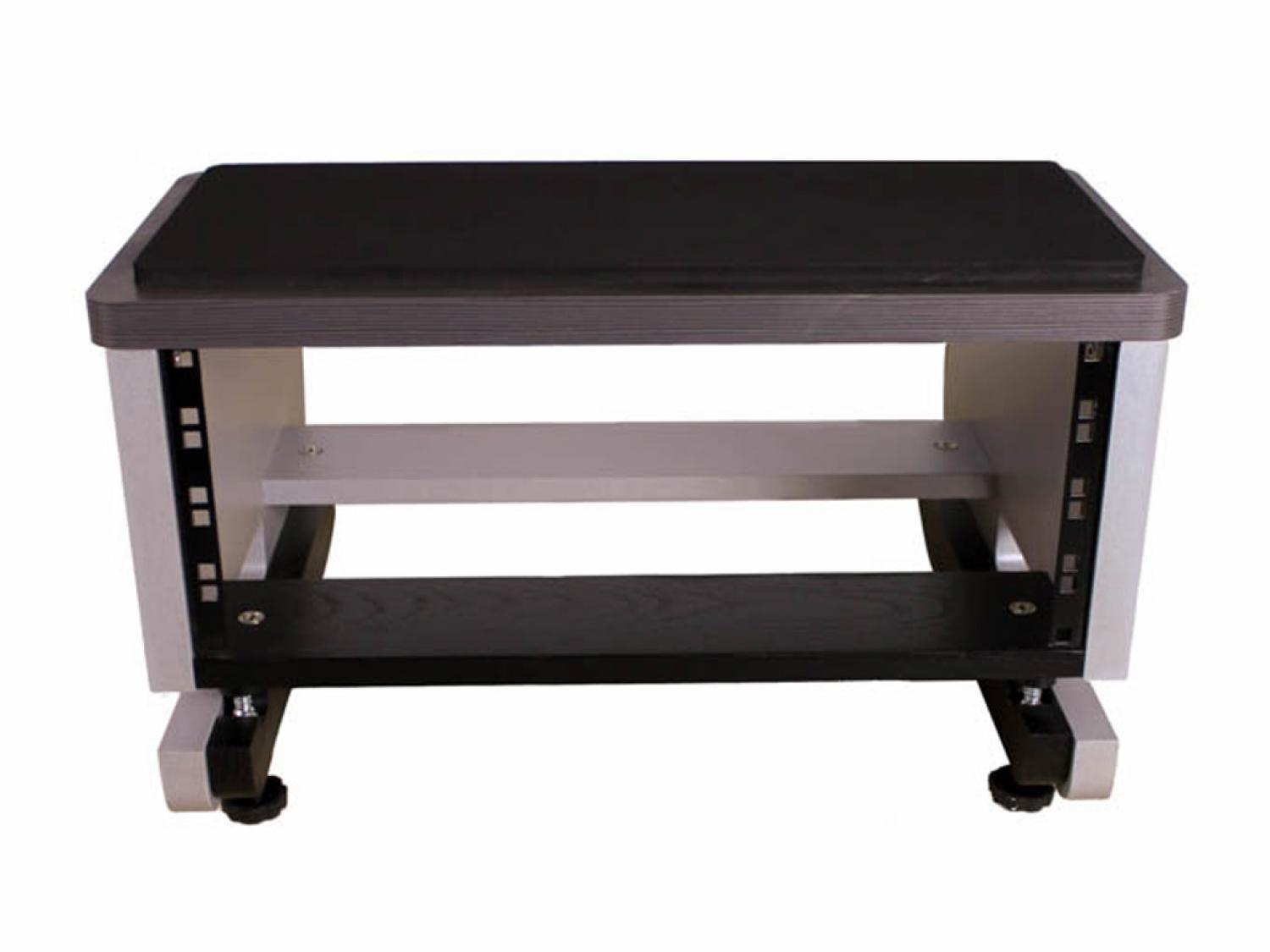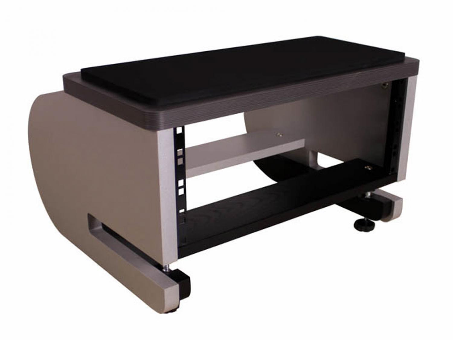 Uno spazio rack "slide-on & tighten" che si aggancia alla tua scrivania ed utilizza solo una frazione dello spazio che occupa un normale rack. Dispone di 4 spazi rack più un superficie superiore imbottita per le tue casse, un monitor, etc.