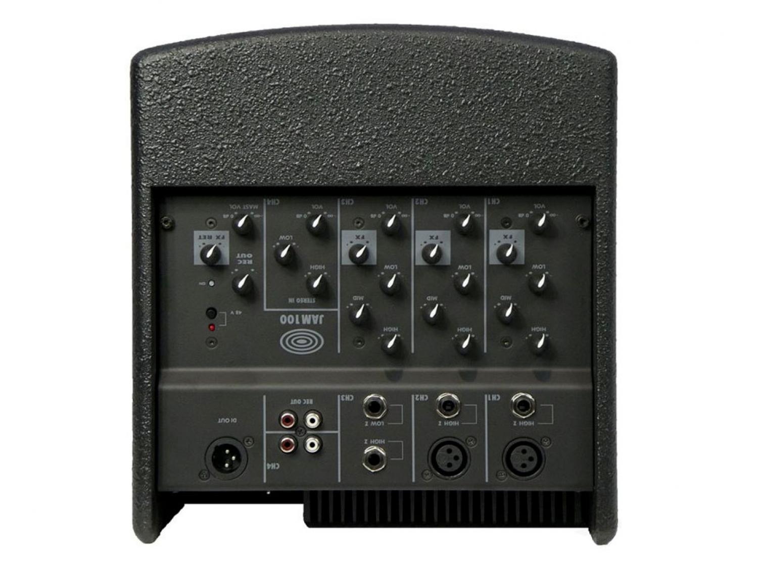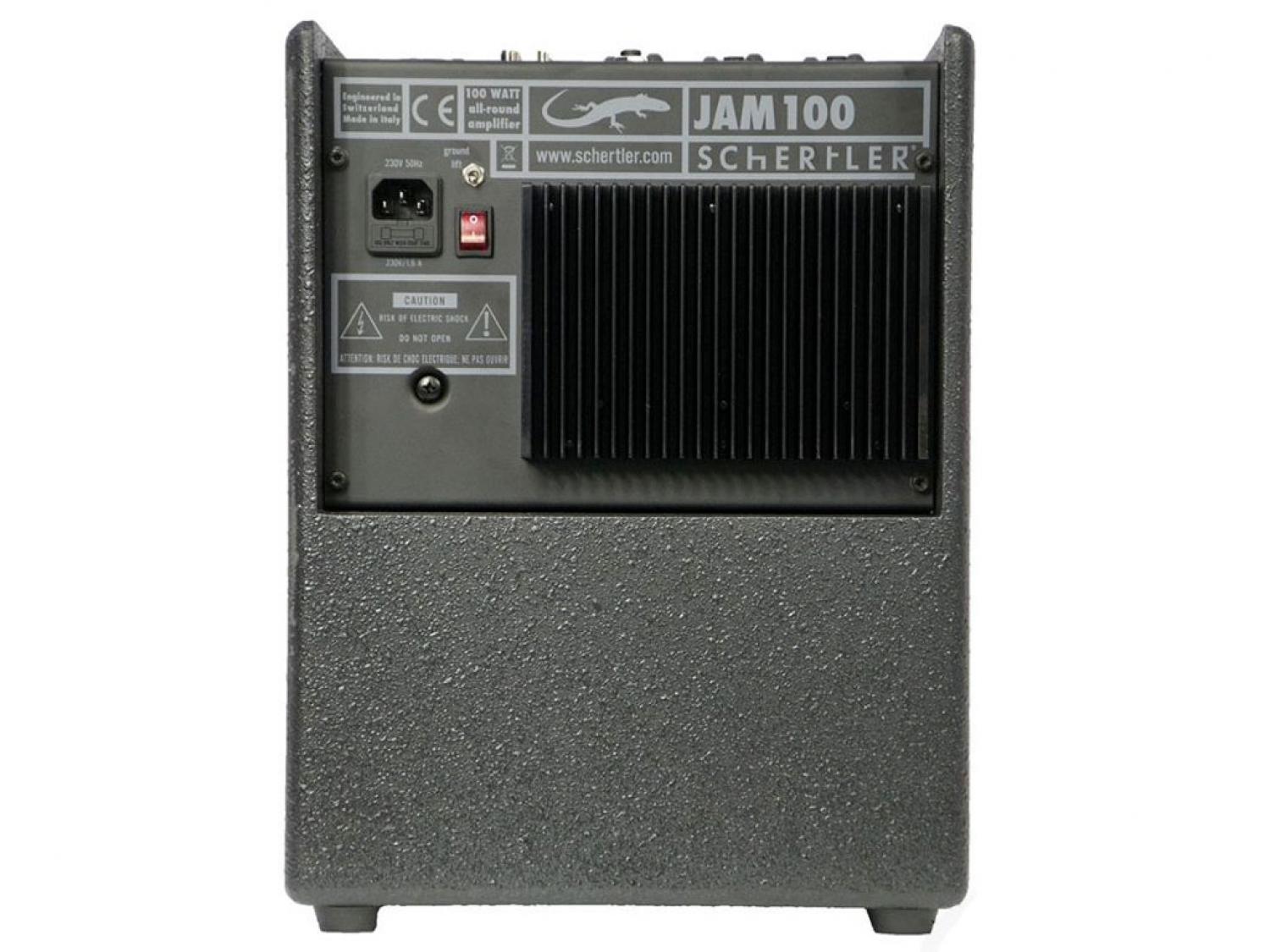 La naturale evoluzione della linea JAM, apprezzata per le sue qualità funzionali, tecniche ed estetiche, ha portato alla nascita del JAM 100, nuovo entry-level della gamma di amplificatori acustici di Schertler. Qualità sotto ogni aspetto, dai due canali microfonici ora dotati anche di ingresso sbilanciato, agli equalizzatori separati per i canali di linea con la possibilità di avere l'effetto anche sul primo dei due, la line out bilanciata, all'alimentazione Phantom sugli ingressi XLR. Il riverbero interno è cambiato per diventare più armonioso e avere un utilizzo più vasto, mentre la potenza totale è salita a quota 80W RMS, per una risposta fedele e coinvolgente fin dal primo ascolto.