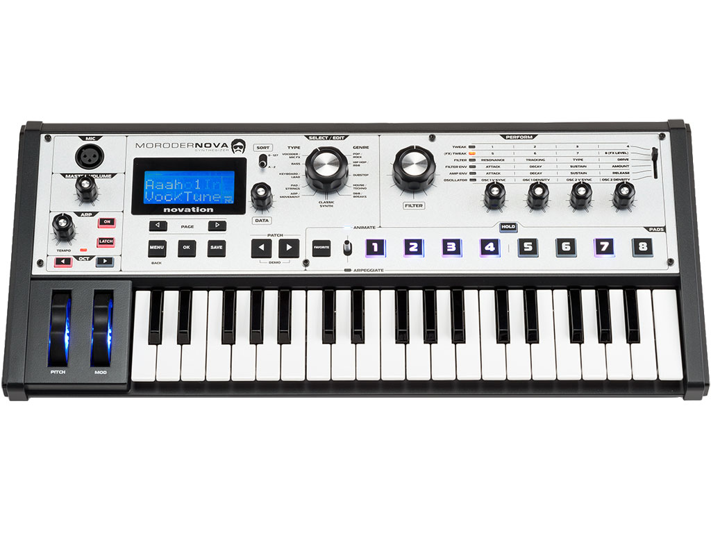 Con più di 50 anni di carriera alle spalle, Giorgio Moroder è senza alcun dubbio uno dei personaggi più influenti della storia della musica elettronica e dance. Tre premi Oscar e un Grammy per una serie di produzioni caratterizzate da grande modernità e uso sapiente della tecnologia: dal suo primo grande successo "I feel love" con Donna Summer, alle colonne sonore di Flashdance, American Gigolo, Scarface, Top Gun e The neverending story, fino alle più recenti collaborazioni con Daft Punk, Sia e Coldplay. Ora negli ultimi anni Moroder alterna il suo lavoro di compositore e produttore a quello di DJ, con performance live molto seguite e di grande livello. Proprio in una di queste occasioni ha avuto modo di utilizzare il synth Novation MiniNova, che poi ha pensato bene di portare con sè per tutto il tour mondiale. Da qui la decisione di Novation di realizzare il suo primo modello Signature in assoluto, che non poteva che chiamarsi MoroderNova. Con MoroderNova, Novation e Giorgio Moroder hanno realizzato un prodotto destinato a fare la storia dei sintetizzatori: il primo signature in assoluto della casa britannica, il primo ed unico synth firmato da Moroder, ed in più un'edizione estremamente limitata, ad aumentarne ulteriormente il valore per i collezionisti. Del MoroderNova saranno realizzati infatti soltanto 500 esemplari, numerati e forniti di certificato di autenticità.