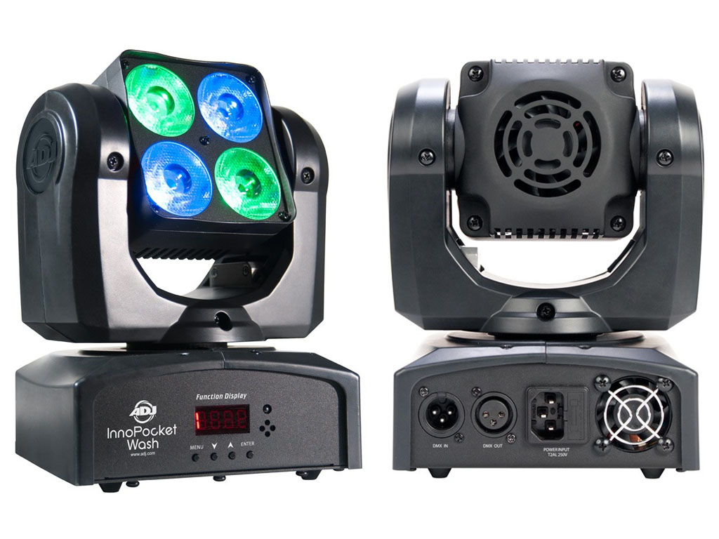 Inno Pocket Wash è una mini testa mobile wash con un angolo di proiezione di 28°. Le dimensioni e il peso estremamente ridotti la rendono ideale per DJ, piccoli club e bar, piste da pattinaggio, bowling e per qualsiasi produzione itinerante. Equipaggiata con 4 QUAD LED (RGBW: Rosso, Verde, Blu e Bianco) da 10W, Inno Pocket Wash vi emozionerà con i suoi brillanti colori e la sua velocità di movimento. È presente la funzione di inversione di Pan e Tilt che permette di ottenere movimenti speculari da due Inno Pocket Wash collegate fra loro. È possibile utilizzarla in modalità attivazione musicale, con i 12 show incorporati, tramite il telecomando IR opzionale o tramite centralina DMX per creare i propri giochi di luce personalizzati.
