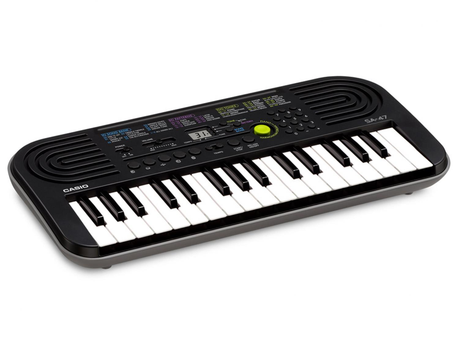 I più piccoli devono sviluppare sui 32 tasti la passione per la musica fin dall'inizio. Le mini keyboard SA-47 producono suoni nuovi e una polifonia a 8 voci, a cui si aggiungono 100 toni e 50 ritmi. Il display a cristalli liquidi, infine, rende le tastiere SA-47 delle compagne di gioco divertenti, ma anche serie! Un altro punto forte è rappresentato dalla semplice manopola di commutazione: sulla SA-47 per il cambio da pianoforte a organo/armonium. Comune denominatore di entrambi gli strumenti è l'intrigante design in stile "retrò": sulla SA-46 abbinato ai vivaci colori giallo-verde e sulla SA-47 a un elegante grigio.