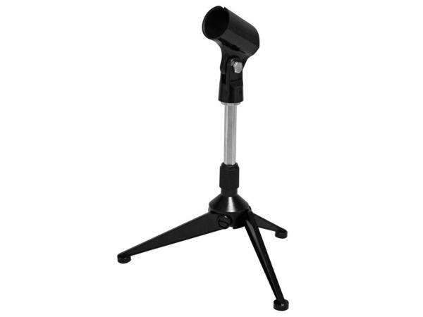 Treppiede da tavolo in metallo regolabile in altezza con supporto per microfono, totalmente richiudibile.