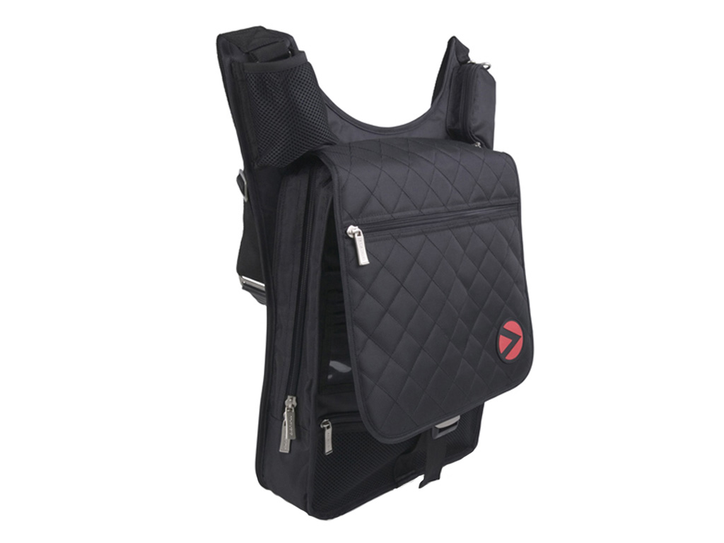 Borsa appositamente studiata per il trasporto a spalla di un computer laptop fino a 17”, interfacce audio/MIDI, controller MIDI, e dischi in vinile da 12”. Include inoltre alcune tasche per accessori e telefono cellulare.