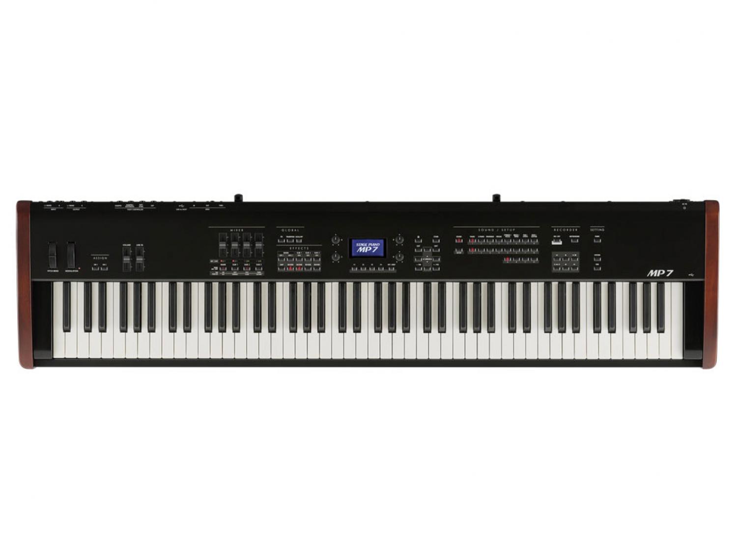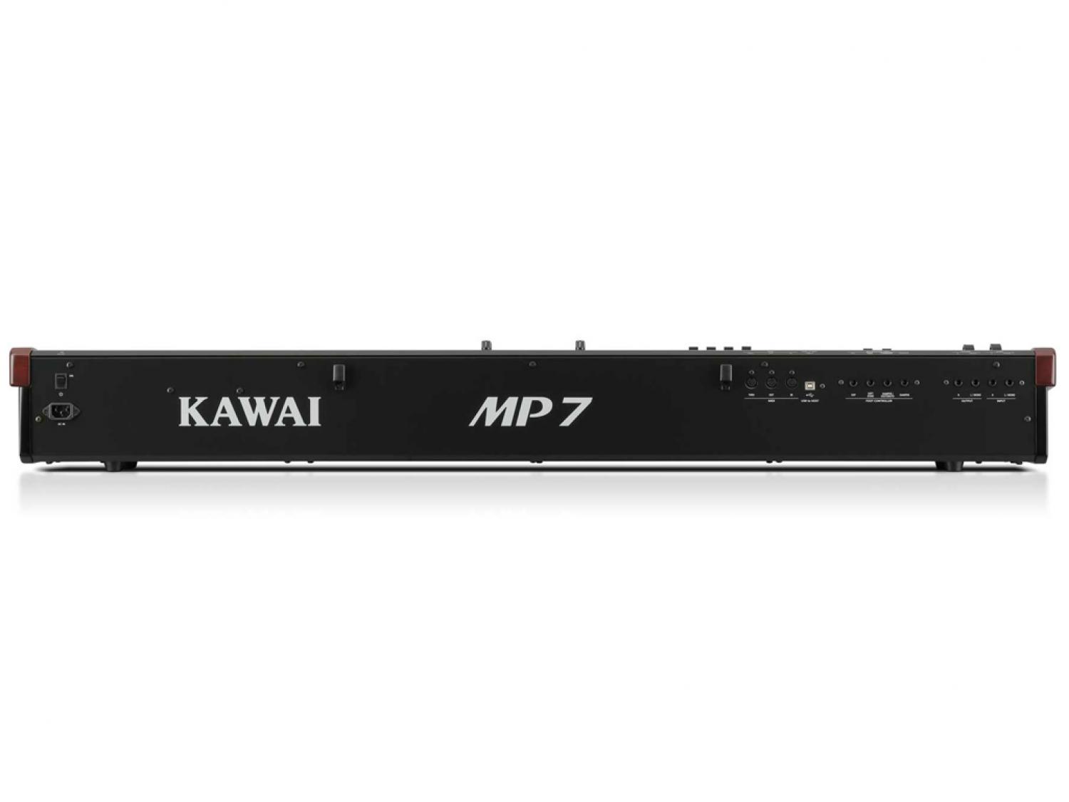 Il meraviglioso suono di pianoforte che si sente non è altro che il suono meticolosamente campionate di un pianoforte Kawai artigianale da concerto, con tutti gli 88 tasti accuratamente registrati e riprodotti fedelmente utilizzando la tecnologia Kawai Harmonic Imaging XL. Questo processo esclusivo ricrea accuratamente l'immensa gamma dinamica del pianoforte a coda, dando una espressività veramente impressionante. Se i pianoforti fossero gli unici suoni della MP7, avrebbe già un valore favoloso, ma ci sono un totale di 256 suoni incredibili, organizzati logicamente in otto gruppi: Pianoforte, E. Piano, Drawbar, Organo, Archi / Vocal, Ottoni/ Fiati X32 , Pad / Synth, Basso / Chitarra. Con 32 suoni per categoria ed il generoso display LCD dell'MP7, potete ottenere quello che serve, in modo rapido e intuitivo. E per personalizzare i suoni, ci sono 6 riverberi e 129 effetti, tutti modificabili. Il Kawai MP7 dispone di 256 note di polifonia, in modo che tu possa gestire qualunque tua invenzione. È possibile collegarsi al proprio Mac o PC tramite la porta USB dell'MP7, ed al tuo synth hardware via MIDI, controllandoli contemporaneamente. L'MP7 consente di controllare fino a quattro canali MIDI alla volta - ciascuno con la propria gamma di tonalità e con pedali e manopole e CC assegnabili. Quattro zone configurabili separatamente consentono di sovrapporre facilmente e dividere i suoni interni. È inoltre possibile modificare i dispositivi MIDI esterni in tempo reale, o controllarli contemporaneamente. Le quattro zone dotate di riverbero e FX controlli indipendenti, mentre la zona principale mette in mostra due blocchi FX e un simulatore di amplificatore.