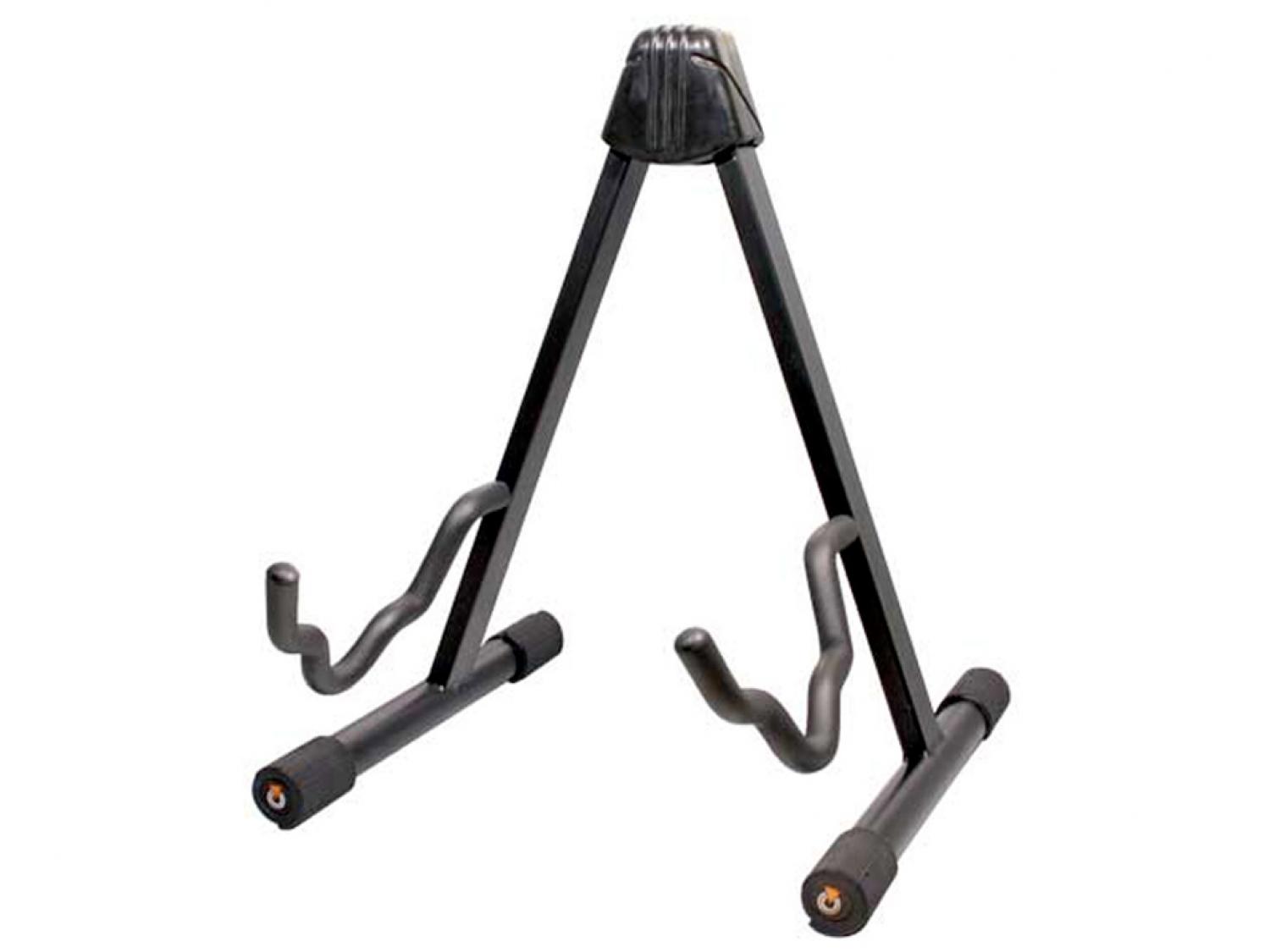 Supporto con braccia universali per basso, chitarra elettrica, chitarra classica e acustica. Provvisto di pin di bloccaggio dell'apertura per stabilizzarlo saldamente in 3 posizioni. Tutte le estremità sono rivestite in gomma per proteggere lo strumento.