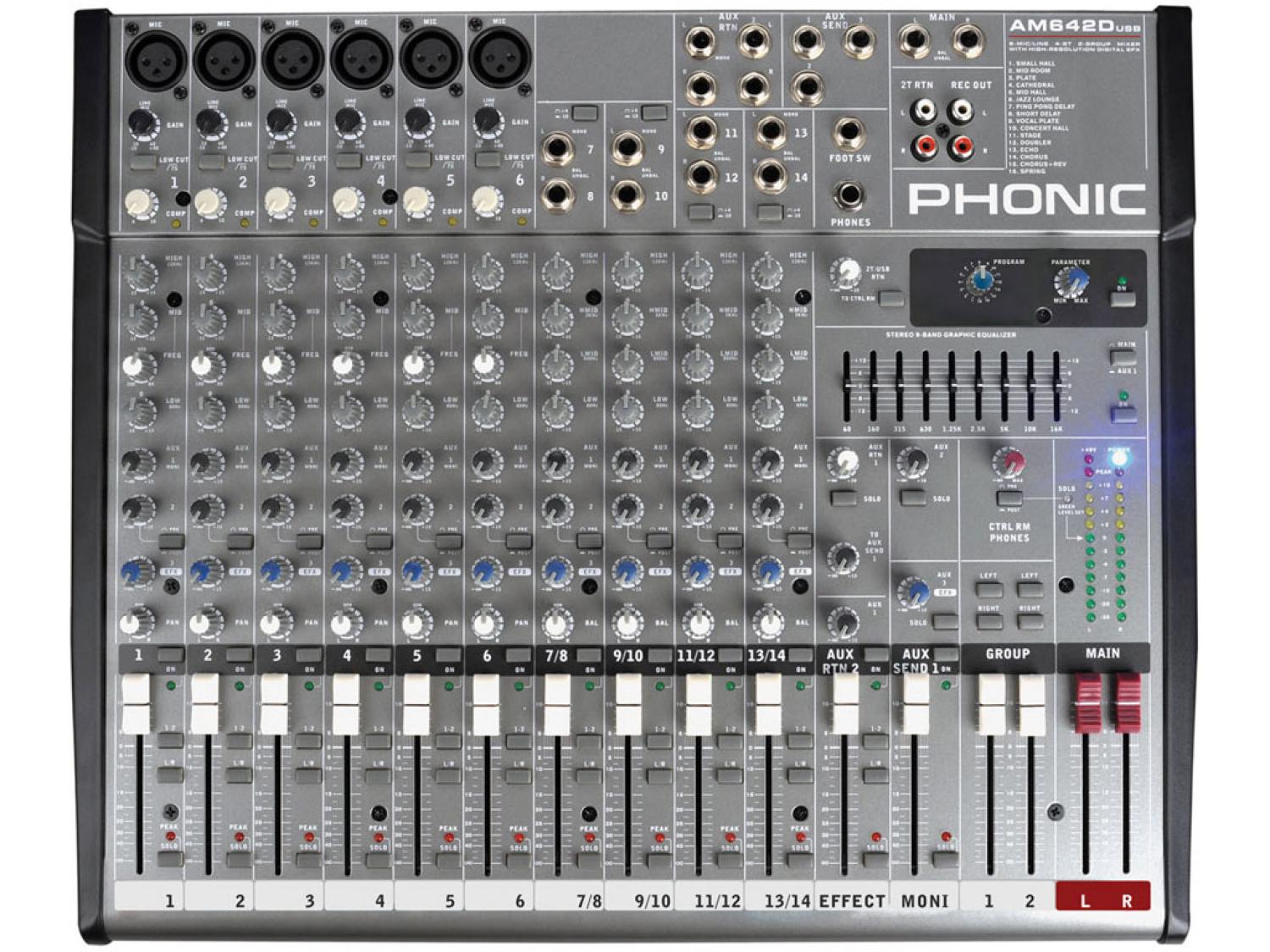 In questa era digitale, la possibilità di registrare ogni cosa che fai è un bene prezioso. Che si tratti di una demo rapida, una nuova registrazione dal vivo o solo qualche rapido fraseggio che ti è venuta in mente al volo, la registrazione non è mai stato così facile come è con un mixer AM USB. I mixer AM442D USB, AM642D USB e AM844D USB sono nuovi membri della famiglia di mixer AM, che sfoggiano le stesse impressionanti caratteristiche ed un sensazione analogica classica, ma con alcune aggiunte fantastiche. Un'interfaccia di registrazione stereo USB rende il dispositivo ideale per la registrazione di eventi live, sessioni di prove, studio jam e così via, senza il mal di testa che deriva da configurazioni complesse di registrazione. Oltre a questo, un versatile compressore è stato integrato nei canali mono per ammorbidire voce e batteria. Con un mixer AM USB, un computer moderno e un pò di talento, potrai effettuare registrazioni di qualità in pochissimo tempo.