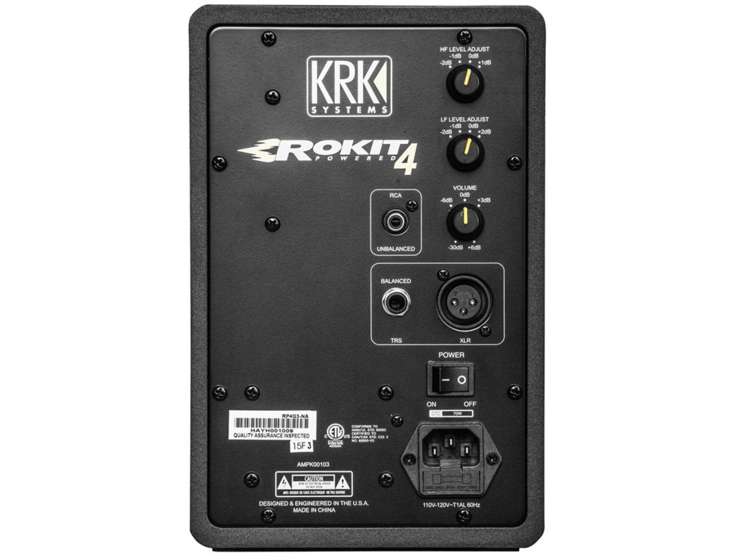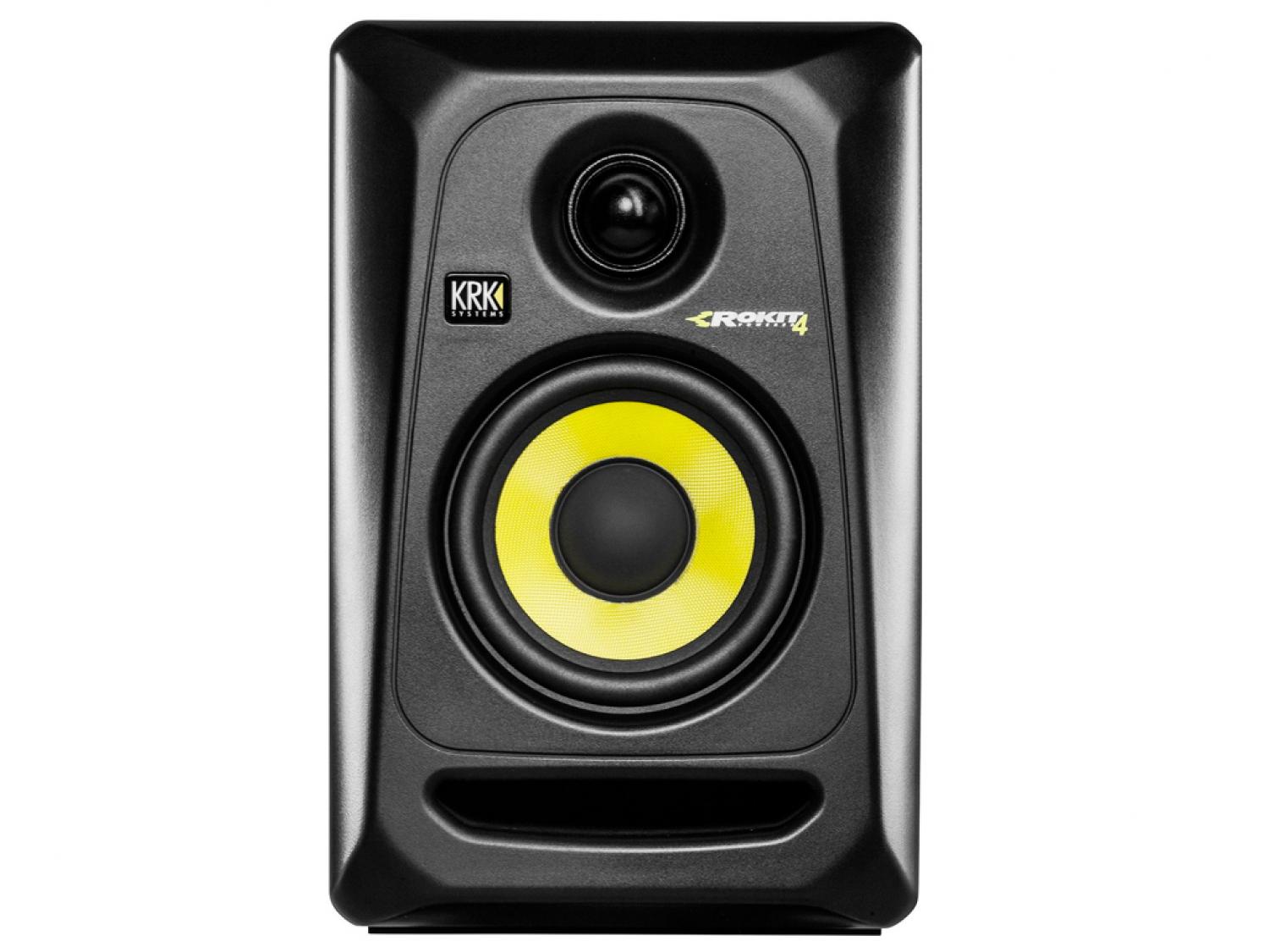Gli studio monitor KRK Rokit RP4 G3 sono costituiti da un tweeter da 1" con cupola morbida, ed un woofer da 4" in materiale composito vetro-aramide. Questo studio monitor amplificato offre prestazioni e precisione professionali per molteplici applicazioni, e garantisce alte frequenze fino a 35kHz, nitidezza vocale ed una estesa risposta alle basse frequenze. La porta dei bassi front-firing riduce le rifrazioni sulle pareti, il modulo midrange girevole permette un posizionamento flessibile nella stanza e la superficie ingegnerizzata riduce le distorsioni per diffrazione, mentre la guida d'onda Rokit è stata progettata per assicurare una immagini dettagliata. La biamplificazione proprietaria in classe A/B e le molteplici connessioni di ingresso forniscono una SPL fino a 102dB, e garantiscono che la Rokit 4 G3 si integri facilmente in qualsiasi configurazione.