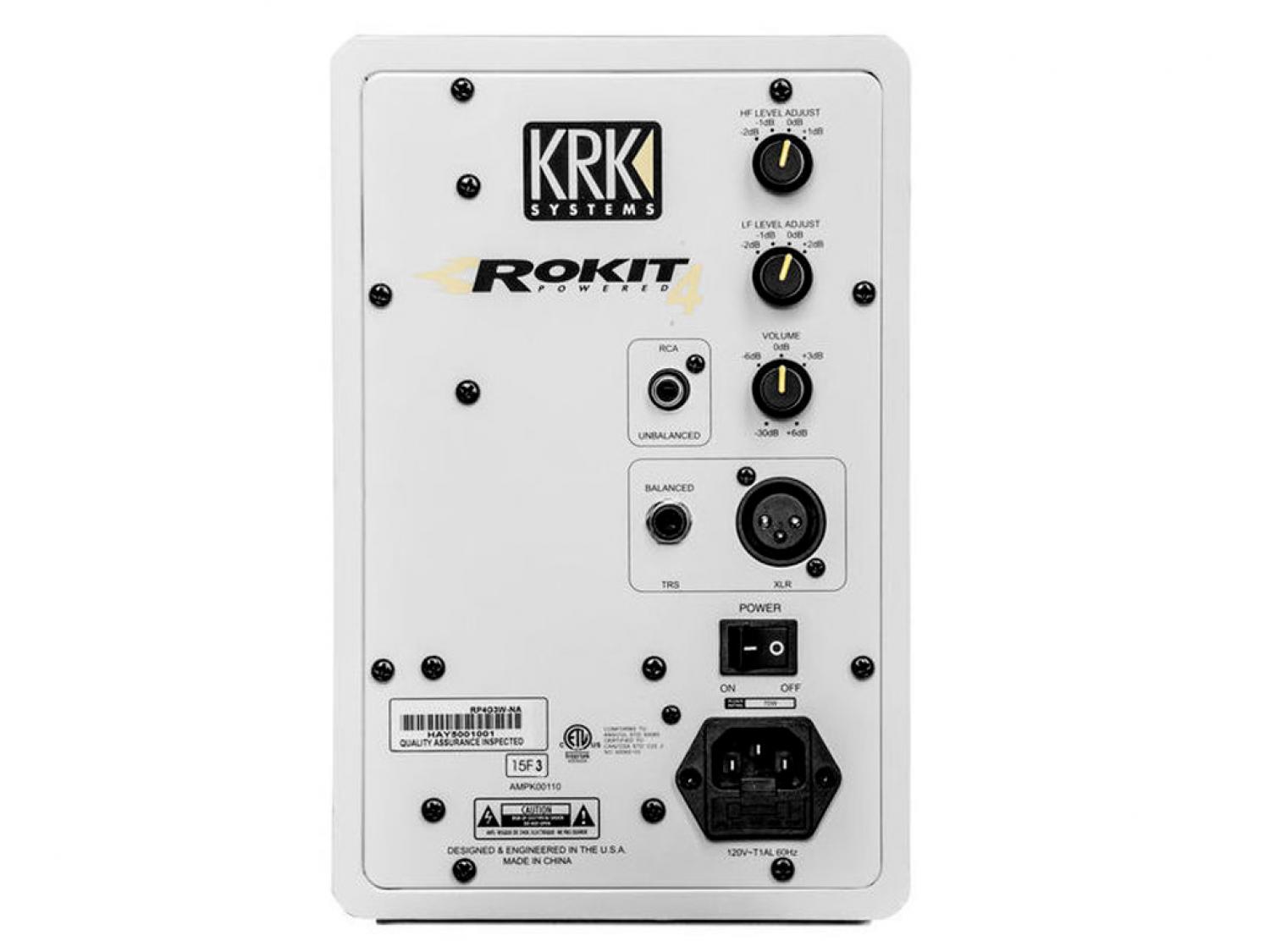 Gli studio monitor KRK Rokit RP4 G3 sono costituiti da un tweeter da 1" con cupola morbida, ed un woofer da 4" in materiale composito vetro-aramide. Questo studio monitor amplificato offre prestazioni e precisione professionali per molteplici applicazioni, e garantisce alte frequenze fino a 35kHz, nitidezza vocale ed una estesa risposta alle basse frequenze. La porta dei bassi front-firing riduce le rifrazioni sulle pareti, il modulo midrange girevole permette un posizionamento flessibile nella stanza e la superficie ingegnerizzata riduce le distorsioni per diffrazione, mentre la guida d'onda Rokit è stata progettata per assicurare una immagini dettagliata. La biamplificazione proprietaria in classe A/B e le molteplici connessioni di ingresso forniscono una SPL fino a 102dB, e garantiscono che la Rokit 4 G3 si integri facilmente in qualsiasi configurazione.