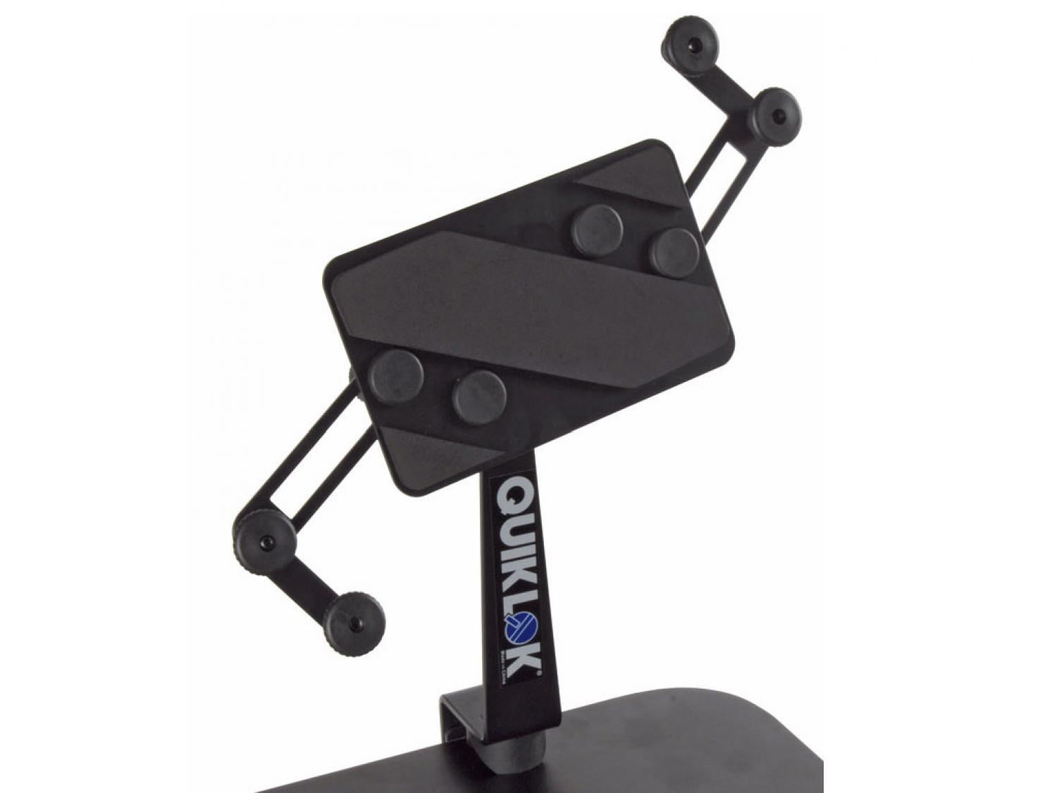Supporto per tablet universale per studi e stazioni di lavoro multimediali. Può essere fissato saldamente a qualsiasi superficie con spessore fino a 72mm (2.83") tramite al suo morsetto di serraggio, ma può anche essere collegato a qualsiasi tubo circolare con diametro fino a 50mm (19.68"). Il design intelligente, sicuro e pratico permette ai musicisti di integrare il tablet con i mobili esistenti, per l'uso sul palco, studi di produzione, in sala prove o in casa. Ospiterà ogni tablet con misure che vanno da 111mm a 301mm (4.37" a 11,85") e profondità variabile da 6,9mm al 18,7mm (0.27" a 0.73"). Ancora, robusti appoggi in plastica gommata flessibili terranno saldamente in posizione il tablet, senza interferire con il connettore dock, jack per altoparlanti, cuffie, pulsanti On/Off e volume.