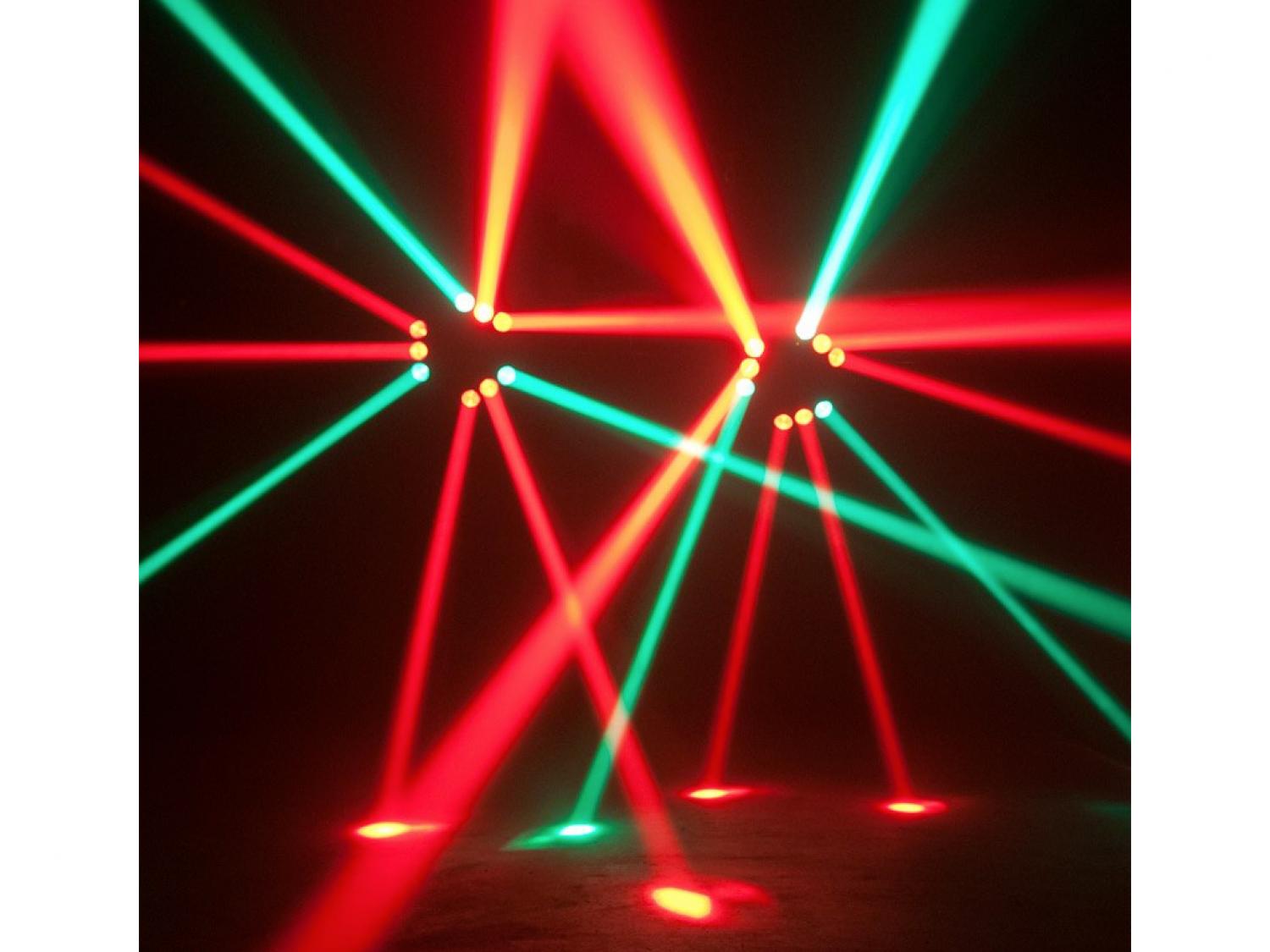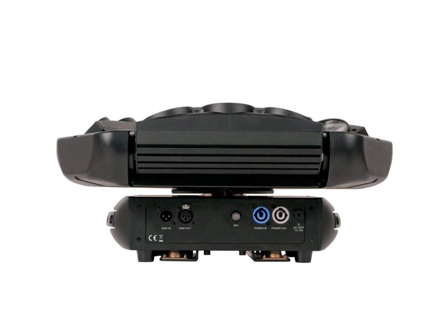 • Proiettore con veloci raggi mobili combinato con giochi di luce a LED con matrice 3x3