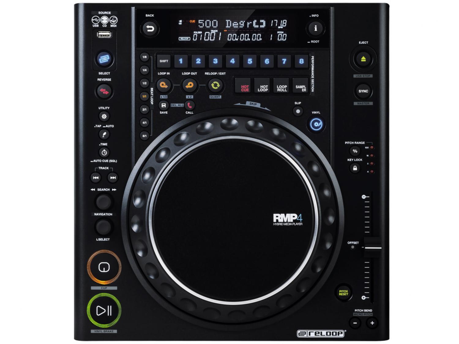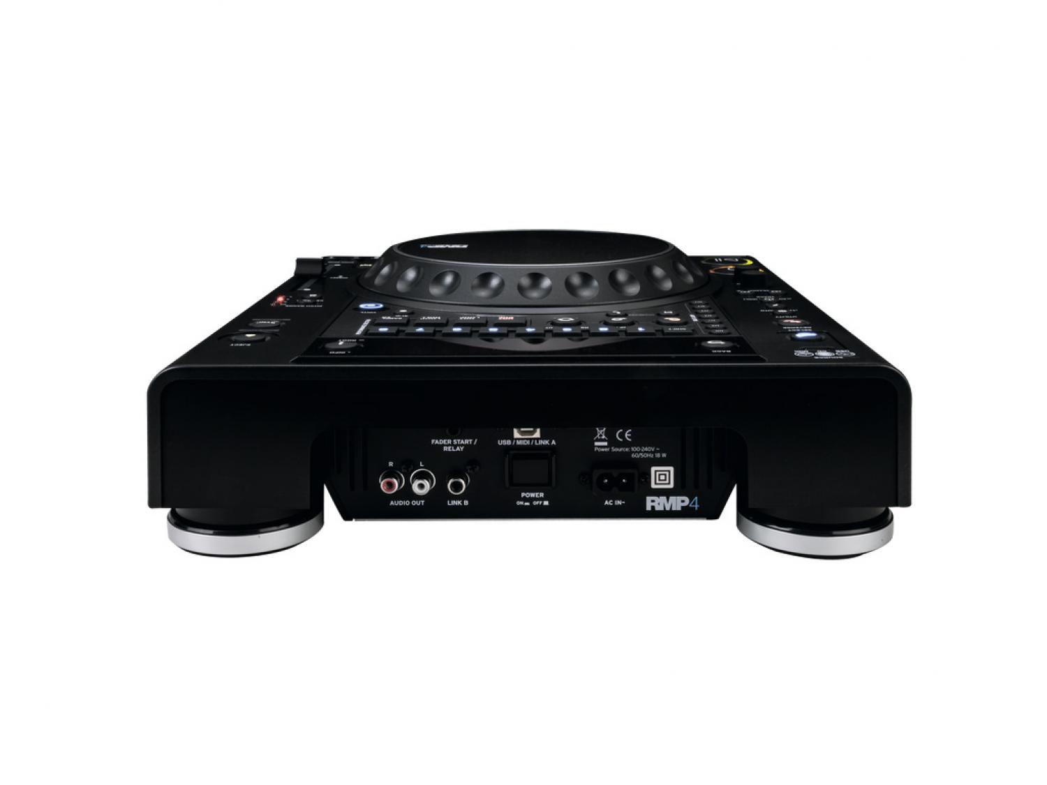 Il lettore ibrido multimediale RMP-4 di Reloop è l'ultima aggiunta alla serie di successo RMP ed una combinazione ideale di lettore CD, lettore USB ed un controller software delle performance. In aggiunta al supporto multi-piattaforma vanta anche molteplici nuove modalità e funzioni straordinarie. L'RMP-4 è dotato di quattro potenti modalità performance - Hot Cue, Hot Loop, Loop Rotolo e Sampler - che consentono di personalizzare il mix. Ogni modalità contiene 8 trigger pad per l'accesso dinamico nel modalità attinente. Nella modalità Hot Cue e Hot Loop è possibile memorizzare, triggerare e cancellare i tuoi hot cue / loop. In modalità Loop Roll è possibile triggerare fino a 8 diverse lunghezze loop roll, variabili da 1/32 a 4/1 beat. Queste tre modalità possono essere ulteriormente migliorata grazie alla modalità SLIP integrata dell'RMP-4 per i singoli remix al volo. La modalità Sampler completa il set e dà accesso a un massimo di 8 campioni "one shot" e loop senza soluzione di continuità. Collegando tra loro due RMP-4 via USB (Smart Link), e attivando la funzione Sync Mode, è possibile sincronizzare automaticamente il beat del brano che si sta per mixare con quello della traccia che è già in riproduzione, ottenendo così lo stesso BPM su entrambi i lettori. La connessione Smart Link offre la possibilità a due RMP-4 di poter accedere alla stessa libreria di canzoni presente in un unico drive USB, oppure di essere utilizzati contemporaneamente come superficie di controllo MIDI con i software di mixaggio più diffusi. Il motore audio presente in RMP-4 riproduce i brani con una qualità sonora superiore ed una dinamica elevata. Anche utilizzando la funzione Keylock, che mantiene fissa la tonalità del brano al variare della velocità, il suono riprodotto rimane accurato e privo di distorsioni. Non appena viene selezionato un brano, l'ampio e luminoso display DotMatrix VFD mostra immediatamente le principali informazioni della traccia. Il pratico encoder con push posto a lato del display consente di navigare in modo intuitivo all'interno della libreria musicale. RMP-4 è equipaggiato con una Jog Wheel extra large a due sensori sensibile al tocco perfetta per eseguire scratch, e un pitch fader ad alta risoluzione da 100mm per realizzare mix estremamente precisi. La costruzione robusta e gli elementi di elevata qualità, rendono RMP-4 ideale per l'utilizzo nei club.