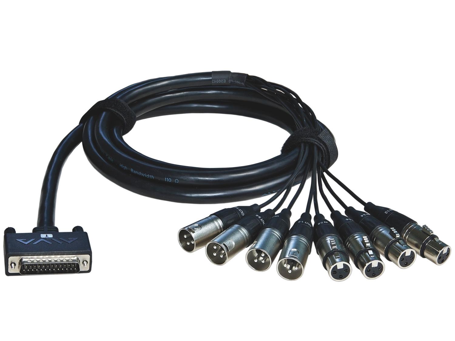 Cavo per connessioni analogiche 8 Canali con 8 connettori XLR più connettore DB-25 multipolare con shell in metallo per una migliore messa a terra ed RF rejection. Tutti gli 8 canali sono bilanciati secondo lo standard Tascam sul cablaggio analogico.