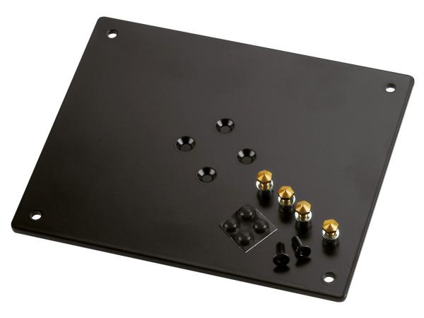 Piastra di supporto monitor per l'asta 26795. Realizzata in acciaio verniciato nero, include 4 punte e 4 pomelli in gomma.