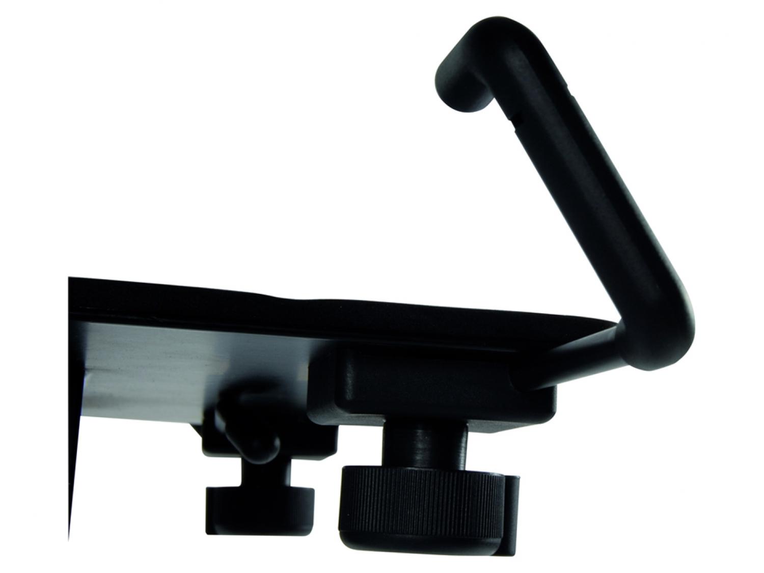 Può contenere computer portatili di qualsiasi formato. Quattro stopper, regolabili in larghezza e profondità, potranno ancorare in modo sicuro qualsiasi computer portatile senza interferire con le porte di ingresso / uscita, slot di espansione, driver CD-RW / DVD, prese per alimentatore A/C posti ai lati del portatile. Il supporto per laptop è regolabile in altezza e inclinazione e rotabile a 360° per consentire il posizionamento ideale del computer portatile. Dotato di ripiano estraibile per mouse che può essere posizionato sia sul lato sinistro che destro del portatile, ed è retrattile per una facile memorizzazione e trasporto.