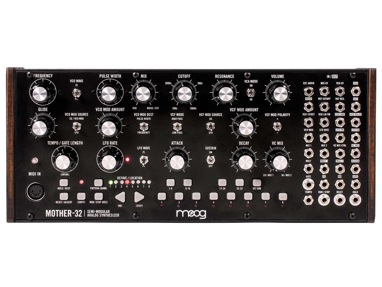 Il Moog Mother-32 è il primo sintetizzatore tabletop semi-modulare di Moog. E' uno strumento analogico particolare che aggiunge un suono analogico grezzo, sequencing ed una ampa interconnettività con qualsiasi sistema elettronico o modulare. Questo nuovo strumento per le esibizioni live e la produzione è realizzato a mano ad Asheville, Carolina del Nord, ed è stato meticolosamente progettato per fornire ai musicisti una gamma diversificata di strumenti creativi per ispirare nuova musica, un suono unico ed una esplorazione sonora infinita. Mother-32 è dotato di un robusto telaio in alluminio estruso con pareti di legno e dispone di uno step sequencer CV/Gate a 32 step con 64 locazioni di sequenza, filtro Moog low pass e high pass, un oscillatore con uscita indipendente per le forme d'onda, un oscillatore di modulazione sub audio/audio, due mixer controllati in tensione, MIDI In e conversione MIDI to CV, una patchbay con 32 punti di connessione e CV jack con 16 possibili sorgenti di assegnazione.