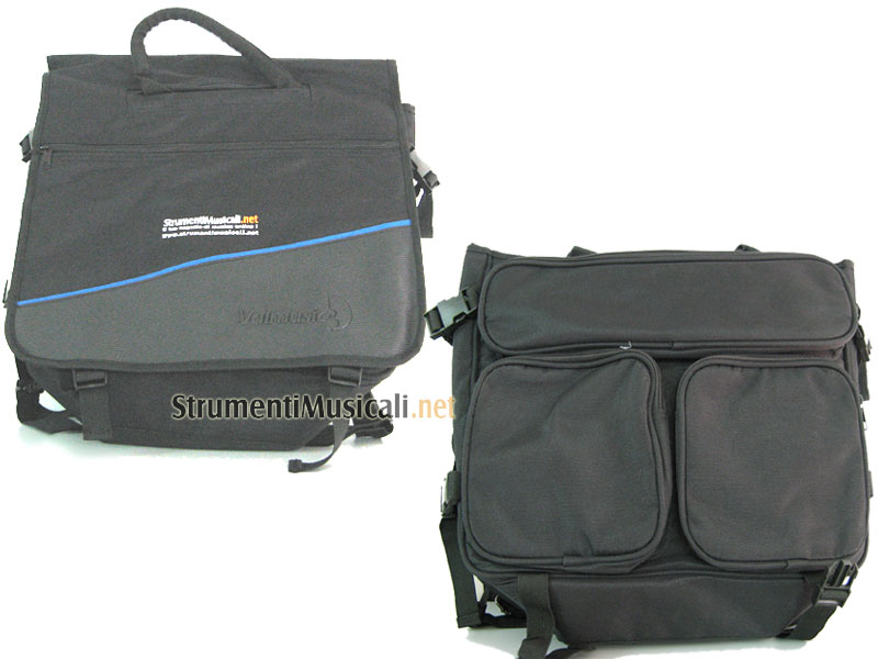 Pratica borsa dal moderno design ideata per il trasporto di dischi LP, dotata di pratiche tasche esterne, cinghia di trasporto, maniglia e tracolle per trasporto tipo zaino. All'interno è possibile alloggiare sia dischi LP che numerosi CD in appositi contenitori removibili.