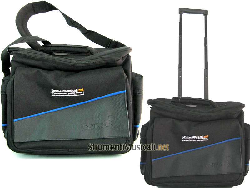 Pratica borsa dal moderno design ideata per il trasporto di dischi LP, dotata di pratiche tasche esterne, cinghia di trasporto e maniglia. All'interno è possibile alloggiare sia dischi LP che numerosi CD in appositi contenitori removibili, si presta al trasporto grazie al pratico sistema trolley di cui è dotato, con carrello estensibile e ruote in gomma.