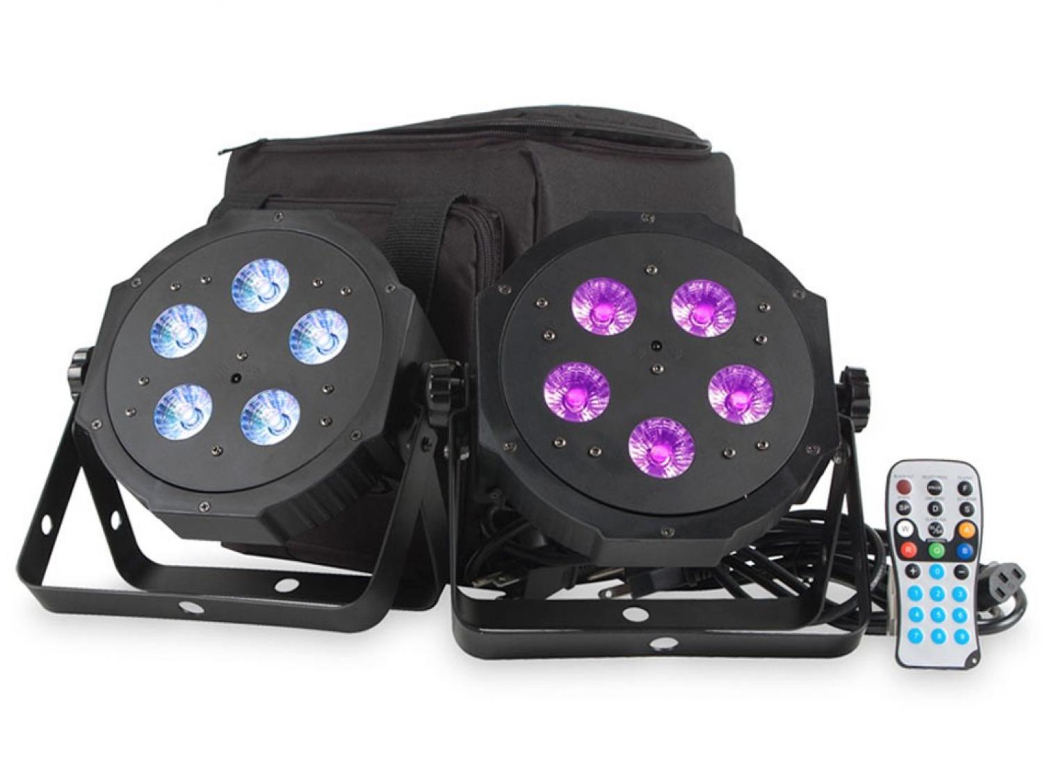 KIT 2 PROIETTORI PAR 5 QUAD LED CON TELECOMANDO WIRELESS E BORSA IMBOTTITA