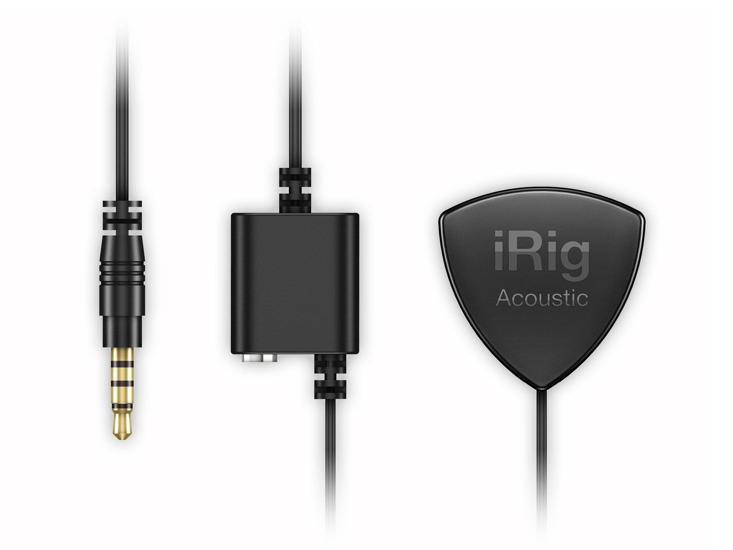 iRig Acoustic è la prima interfaccia acustica per dispositivi mobili. Si tratta di un microfono che si fissa facilmente sul bordo di una chitarra acustica (e su strumenti con buche armoniche simili, come l'ukulele). Il design estremamente compatto è ottenuto grazie all'impiego di un microfono MEMS ad alta qualità. Il suo diagramma polare omnidirezionale, i circuiti a basso rumore e l'estesa risposta alle basse frequenze consentono di ottenere una registrazione professionale in qualsiasi momento e ovunque. iRig Acoustic può essere collegato al dispositivo con un cavo standard 1/8" TRRS ed è possibile monitorare le prestazioni grazie al connettore jack femmina posto sul cavo in-line. Per proteggere la chitarra da graffi o segni, il corpo dell'iRig Acoustic è realizzato in morbida gomma.