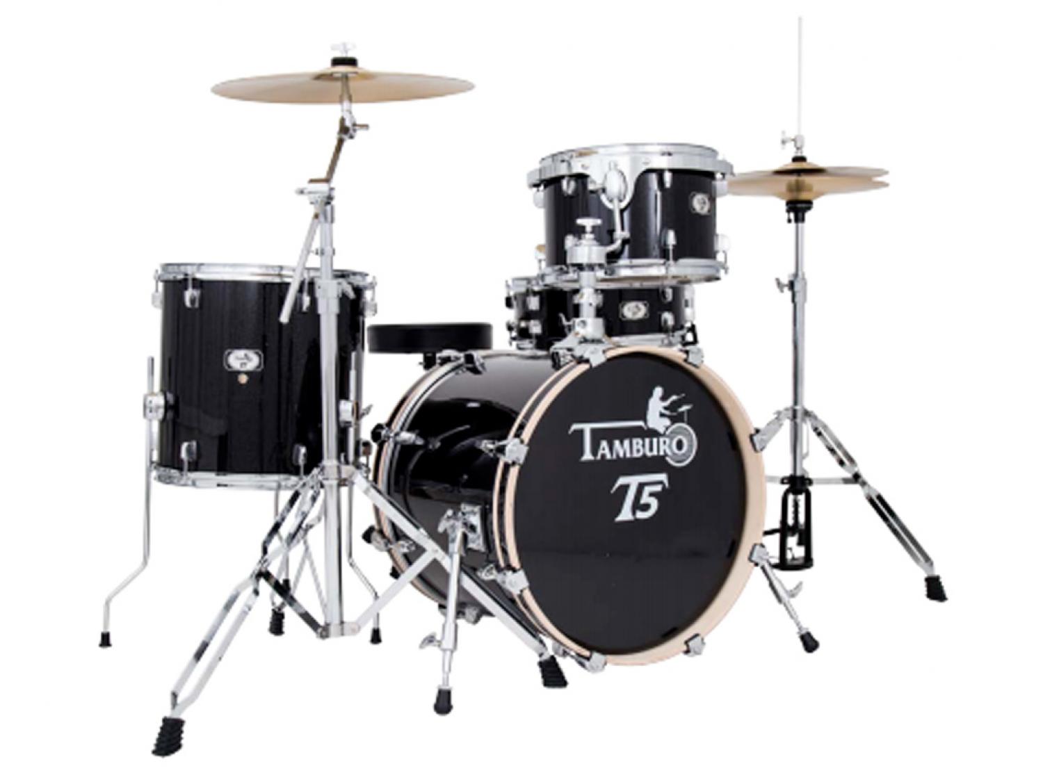 Popolarissima e richiestissima, la Tamburo T5 Jazz con le sue innovative soluzioni tecniche ed estetiche è lo strumento perfetto per il batterista alla ricerca del miglior rapporto qualità/prezzo. I fusti realizzati in pioppo con uno spessore di 6,5mm offrono maggiore suonabilità e versatilità timbrica. Il tom viene montato sulla cassa grazie ad un sistema di sospensione professionale Tamburo. Le batterie T5 Jazz vengono inoltre fornite di tutti gli accessori necessari per iniziare subito a suonare: hardware Tamburo di alta qualità composto da asta hi-hat, asta a giraffa, supporto per rullante, pedale cassa e sgabello. Completa la dotazione un set di piatti di ottima qualità con hi-hat 14" ed un piatto Crash/Ride da 16".