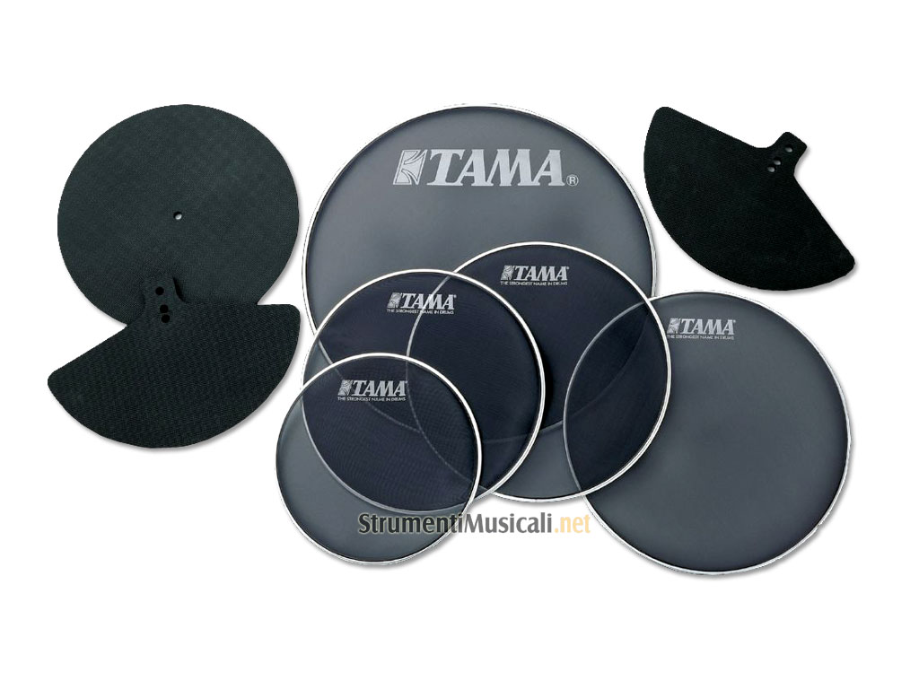 Set di pelli mesh e sordine per piatti. Consente di attenuare quasi completamente il suono della batteria mantenendo inalterate le caratteristiche di dinamica.