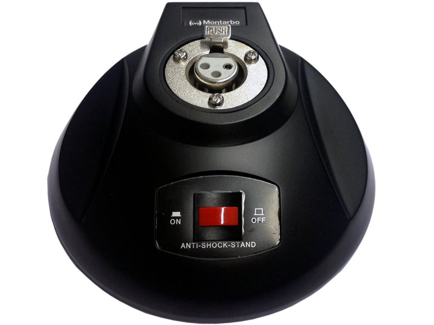 Supporto microfonico da tavolo per microfoni con connettore XLR maschio. Realizzata in fusione di zinco, il peso massiccio e il sistema anti-vibrazione interno forniscono massima stabilità, ed una eccellente riduzione delle vibrazioni e del rumore dovuto al maneggiamento.