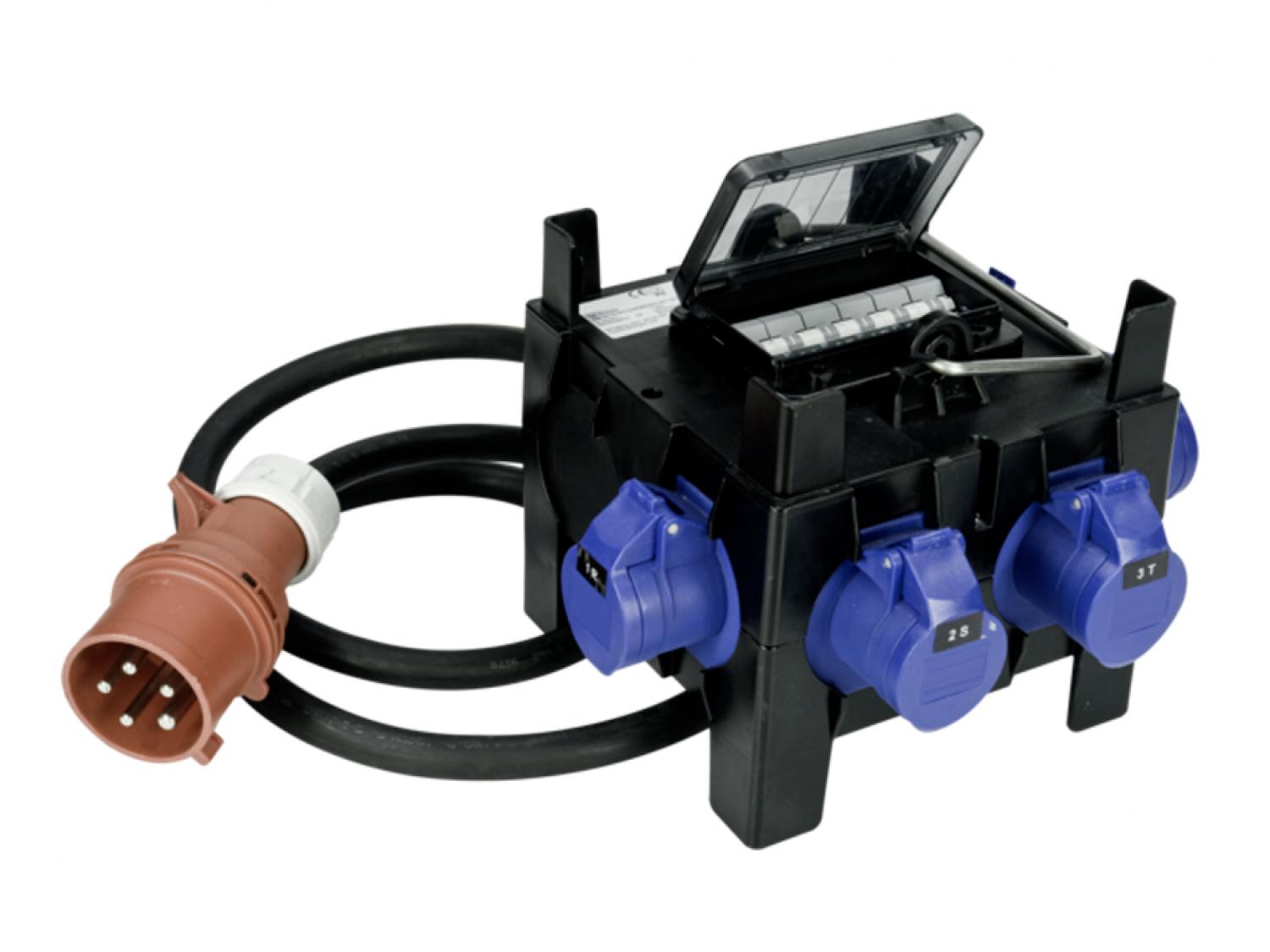 Power-box portatile per la distribuzione elettrica, ingresso spina 5p da 32A.