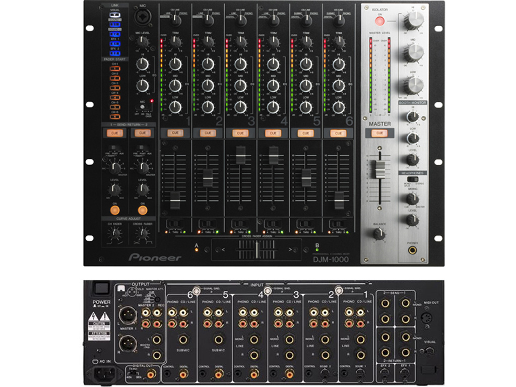 Il DJM-1000 è un mixer da installazione montabile su rack da19 pollici, un'esaltante innovazione nell'audio digitale. Offrendo un suono digitale di qualità superiore con frequenza di campionamento di 96 kHz/24 bit ed elaborazione di 96 kHz/32 bit, i terminali d'ingresso-uscita digitali del modello DJM-1000 consentono la compatibilità con altri deck DVJ e CDJ Pioneer. L'intuitivo collegamento a effector e sampler permette al DJ professionista di conferire una maggiore varietà alla performance. Tra gli altri elementi che denotano l'enorme potenziale di questo mixer figura la capacità di digitalizzare l'ingresso analogico, senza deterioramento della qualità sonora.