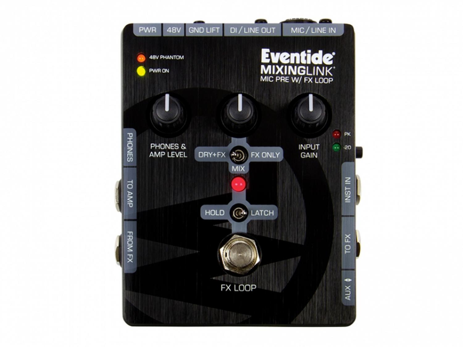 Il MixingLink di Eventide è interessante, soprattutto per quei cantanti che vogliono utilizzare effetti a pedale per la propria voce. Avere un pedale come il Mixing Link che sta in qualsiasi pedaliera e permette di gestire meglio gli effetti sia in studio che durante le performance live. L'idea per la creazione di questo pedale è venuta ad Eventide osservando che, sebbene i loro pedali fossero progettati per la chitarra, molti hanno iniziato ad usarli anche per la voce. Si possono quindi aggiungere effetti alla voce con qualsiasi stompbox, godere di una preamplificazione di qualità e attivare e disattivare la catena effetti in modo pratico. Il pedale può essere impostato in modalità latch o momentary, per usare gli effetti quando si preme il pedale o solo quando lo si tiene premuto. Si adatta a microfoni a condensatore (Phantom 48V) e a nastro ed offre un gain pulito di circa 65dB. Possiede un entrata ausiliaria per collegare MP3 con basi o sequenze, input e output per chitarra per reamping e registrazione, uscita cuffie con volume. Funziona da mixer per mixare il segnale pulito della voce con gli effetti.