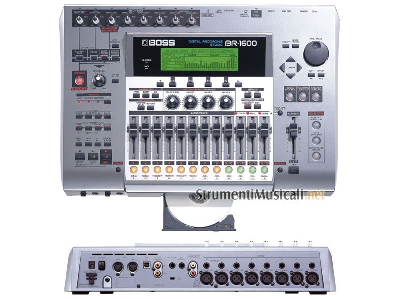 BR-1600CD dispone di 16 tracce (256 Virtual tracks) e di otto ingressi microfonici XLR di ottima qualità con phantom power e compressore indipendente. Utilizzando il nuovo sistema Multi-Track, sarà possibile registrare otto ingressi simultaneamente; questo porta il nuovo BR ad essere adatto anche ad utilizzi più complessi come la registrazione Live di una band in contemporanea. Anche a livello della sezione effetti troviamo grosse novità: oltre ai classici effetti dedicati a chitarra, basso e voce è adesso possibile perfezionare suoni e tracce vocali grazie alla presenza del Vocal Tool Box che mette a disposizione algoritmi come Pitch Corrections e funzioni di Armonizzazione automatica. Il BR-1600CD comprende poi un masterizzatore interno per CD-R/CD-RW, così da poter finalizzare il proprio lavoro senza effettuare alcun riversamento esterno. In più il CD drive può essere usato per importare audio e loops direttamente nelle tracce. Ampliando il concetto già presente nei modelli BR precedenti BR-1600CD è dotato di tracce Drum, Bass e Loop che consentono di costruire una ritmica davvero realistica e, grazie alla porta USB, è possibile importare ed esportare direttamente files .WAV oltre a realizzare il backup dei propri dati.
