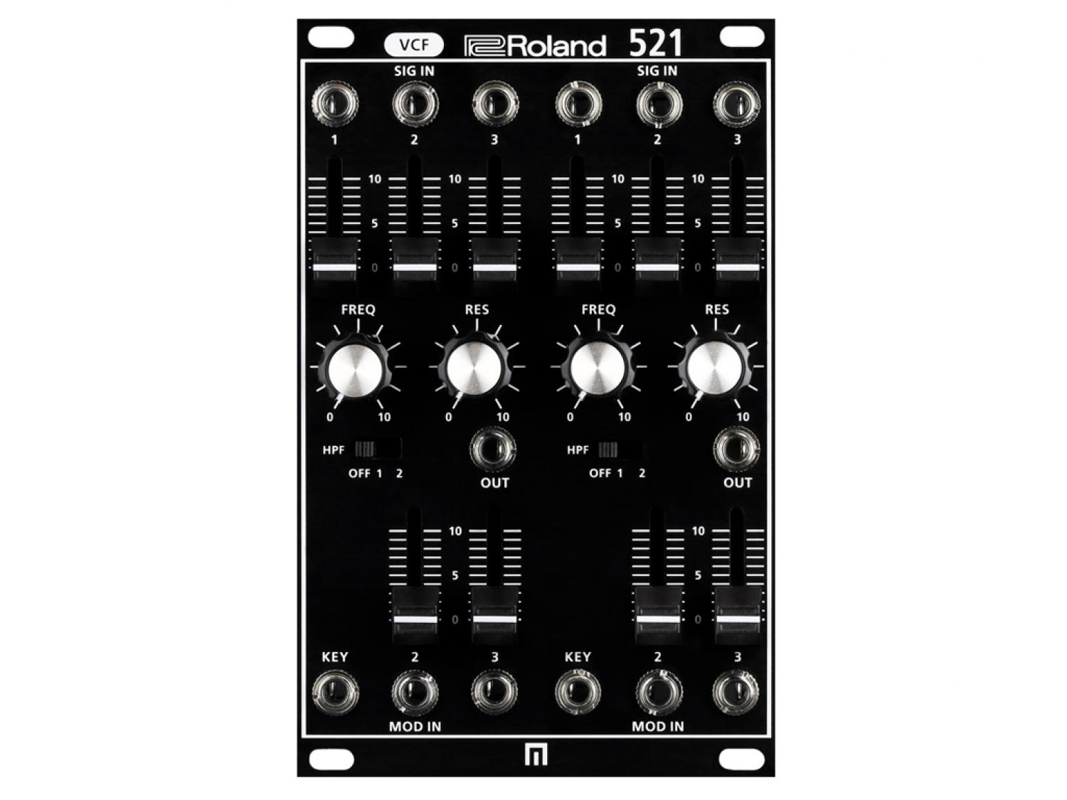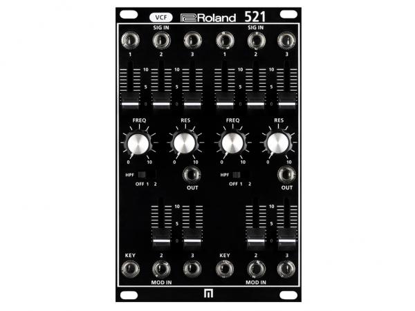 Il SYSTEM-500 è costituito da moduli in formato Eurorack che si possono combinare in qualsiasi combinazione per creare il massimo dei sintetizzatore modulari Roland. Ogni modulo è completamente analogico ed è stata progettato per la massima compatibilità con il mondo di moduli sintetizzatore ed effetti contemporanei. Il SYSTEM-500 è un compatto, potente sistema che apre ampie possibilità per il sound design e l'esplorazione musicale. Il modulo 521 Dual VCF (filtro controllato in tensione) è dotato di due filtri separati passa basso per modificare il timbro delle sorgenti audio. Ogni filtro ha i propri controlli dedicati per frequenza di taglio, risonanza, ed un filtro passa alto fisso con due punti di cutoff commutabili. Mixer audio e CV input su ogni canale consentono la fusione di più segnali audio e sorgenti di modulazione.