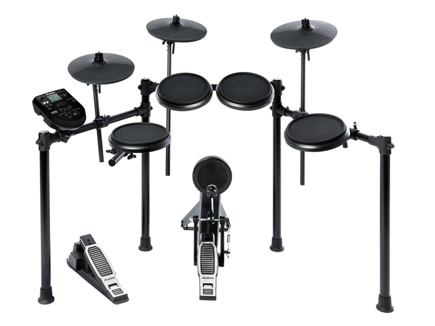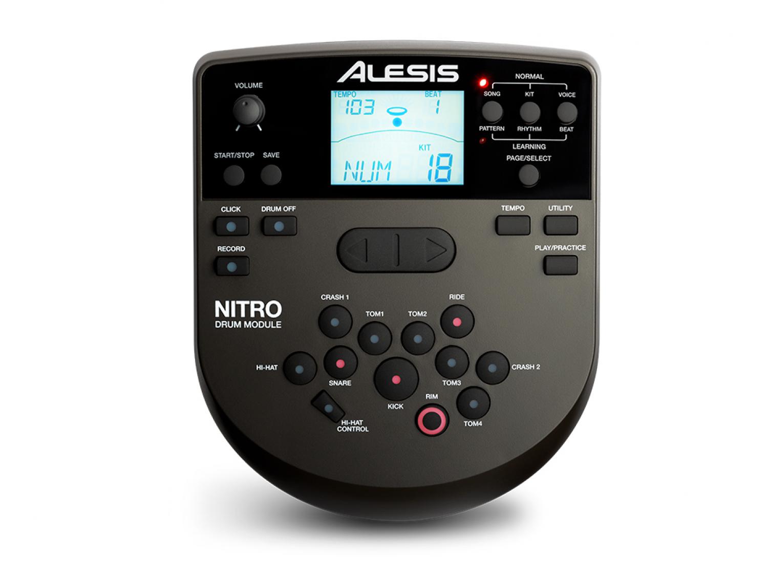 Alesis Nitro è un kit di batteria elettronica completo di 8 pezzi che comprende tutto il necessario per suonare come un professionista. È dotato di tre tom dinamici 8", un rullante bi-zona da 8" per una grande sensibilità ed una risposta naturale, oltre a un pad grancassa con il pedale. Tre piatti da 10", tra cui un crash con choke, offrono una gamma virtualmente illimitata di espressività ed il telaio di montaggio in alluminio a 4 montanti tiene tutto saldamente e sicuro. La configurazione comprende anche il potente modulo di batteria elettronica Nitro con centinaia di suoni di percussioni, 40 kit diversi e 60 tracce integrate su cui suonare. Lo schermo LCD retroilluminato rende la navigazione un gioco da ragazzi. Pulsanti dei piatti e dei tom sono disposti per assomigliare al layout di un kit tradizionale, quindi è semplice assegnare suoni e creare kit rapidamente.