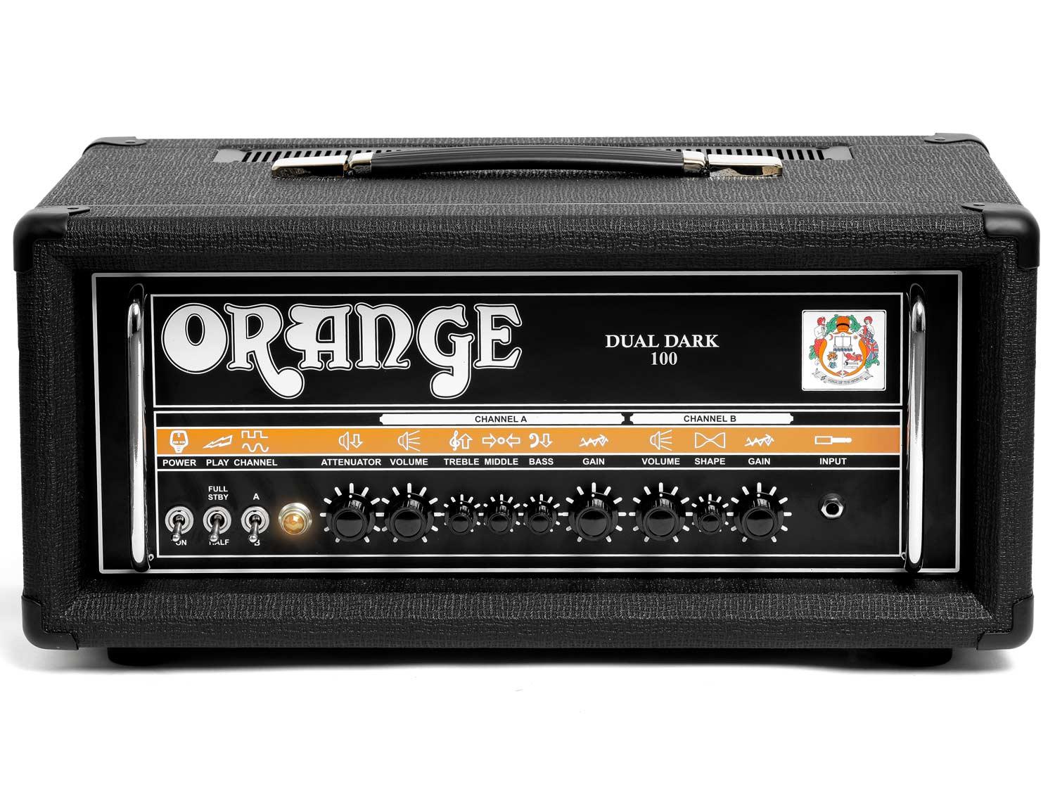 Gli amplificatori Orange con più alto Gain, fino ad oggi, ed i primi amplificatori ad offrire quattro stadi di guadagno su due canali, le testate Dual Dark sono aggressive e flessibili allo stesso tempo. Con controlli del guadagno e del master volume sia in A che in B, entrambi i due canali possono fornire suoni puliti, overdrive o folli distorsioni, rendendo questi amplificatori incredibilmente flessibili, nonostante le loro evidenti inclinazioni metal. Il canale A è un design completamente nuovo, con un voicing che rivela un equalizzatore grasso e potente con forti medi aperti ed una risposta stretta. Il canale B trae le sue origini dall'amato Dark Terror, con un attacco fulmineo perfetto per i riffing percussivi down-tuned. L'intuitivo controllo Shape, prima apparizione sull'acclamata serie Thunderverb, riguarda la risposta di fascia media, mentre interagisce contemporaneamente con alti e bassi. Rispetto al suo fratello minore da 50W, la sezione di uscita più grande del Dual Dark 100 permette anche un maggiore controllo sul livello enorme di guadagno che il preamplificatore può offrire. Il punch delle basse frequenze ed il peso dei midrange è veramente sconcertante, e se ti piace la distorsione al front-end, amerete il Dual Dark 100! Per un sapore diverso, l'uscita può essere ridotta da 100W fino a 70W, 50W o 30W per un clipping anticipato delle valvole di uscita ed una saturazione a ridotti livelli di volume.