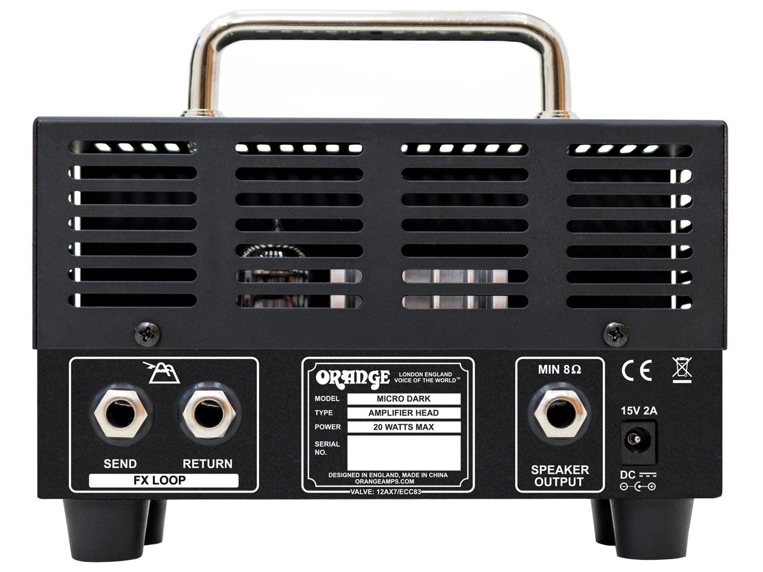 Il Micro Dark sfoggia un nuovo circuito ad alto guadagno che unisce le valvole e la tecnologia a stato solido. Il preamplificatore utilizza una singola valvola 12AX7 / ECC83 e produce una vasta gamma di suoni utilizzabili con suoni puliti caldi, overdrive morbidi e grassi, calde distorsioni. Design robusto, la sezione di uscita a stato solido indica il Micro Dark può essere accoppiato con qualsiasi cabinet 8-16 Ohm. Il controllo Shape esclusivo di Orange modifica la risposta dei midrange, interagendo contemporaneamente con gli alti e i bassi. Partendo dalla posizione ore 12, una sottile rotazione a sinistra aggiunge più fascia media e smussa gli alti. Una tacca o due oraria riduce le frequenze medie e rende più brillante il suono.