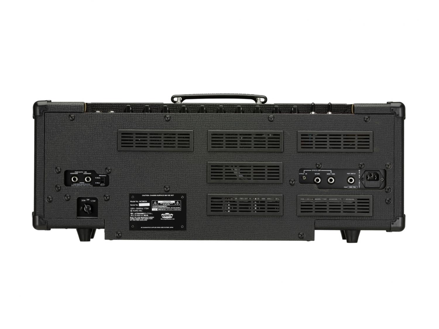 Proprio come gli altri amplificatori della serie Custom, le testate AC30CH e AC15CH sono equipaggiate con valvole 12AX7 per la sezione preamp e EL84 per la sezione finale. Il cabinet V212C completa il pacchetto con i suoi 2 coni da 12 pollici Celestion G12M Greenback che forniscono il classico tono British. I due canali Normal e Top Boost hanno un controllo di volume dedicato, e il canale Top Boost presenta controlli di tono Treble e Bass. La sezione Master ha il distintivo controllo Tone Cut e il Master Volume che permettono di avere un'ampia varietà di suoni, dai brillanti Clean ai crudi e potenti Overdrive. Il Tremolo Vox e il Riverbero a molla della serie Custom sono presenti anche in questi nuovi modelli. Questi effetti possono essere abilitati o disabilitati tramite l'utilizzo del footswitch opzionale Vox VFS2A. Il reactive attenuator è un nuovo progetto di attenuatore che utilizza la tecnologia Reactor di Vox ottimizzare l'interazione tra il cono e l'amplificatore a qualsiasi volume. Questo permette allo speaker e all'amplificatore di comportarsi al meglio sia in stage che in camera da letto, fornendo un senso di potenza e controllo che non può essere ottenuto con altri attenuatori.