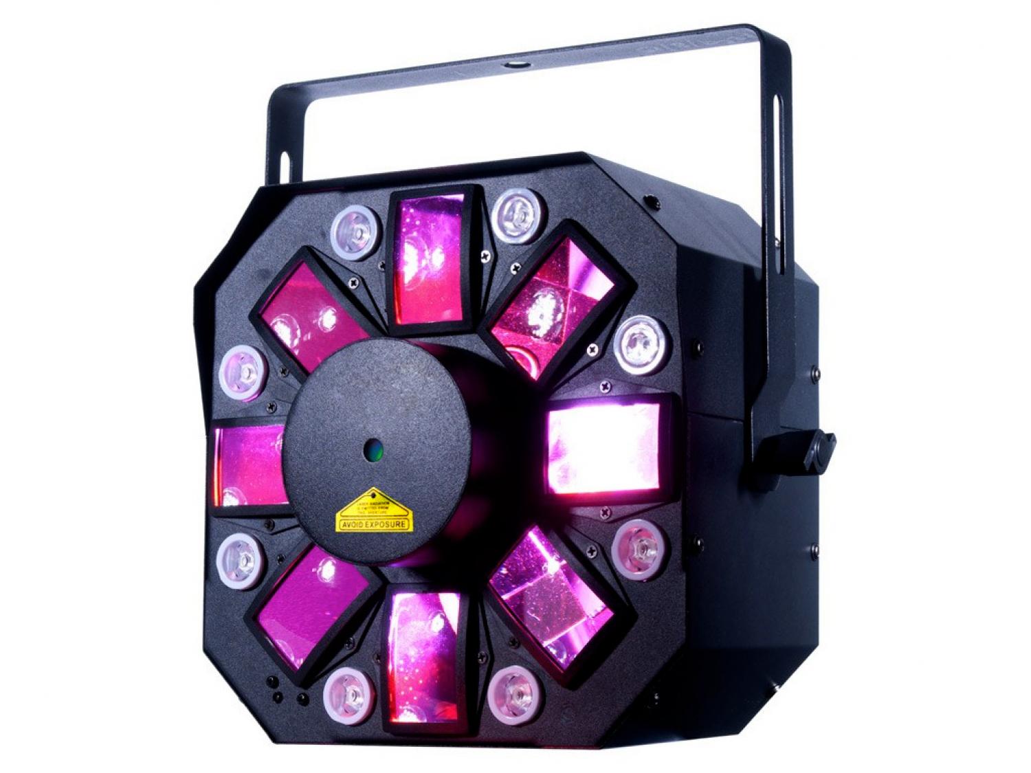 • Sorgente luminosa: 6 LED RGBA + Bianco + Rosa da 5W + 8 LED UV da 3W UV + Laser rosso e verde