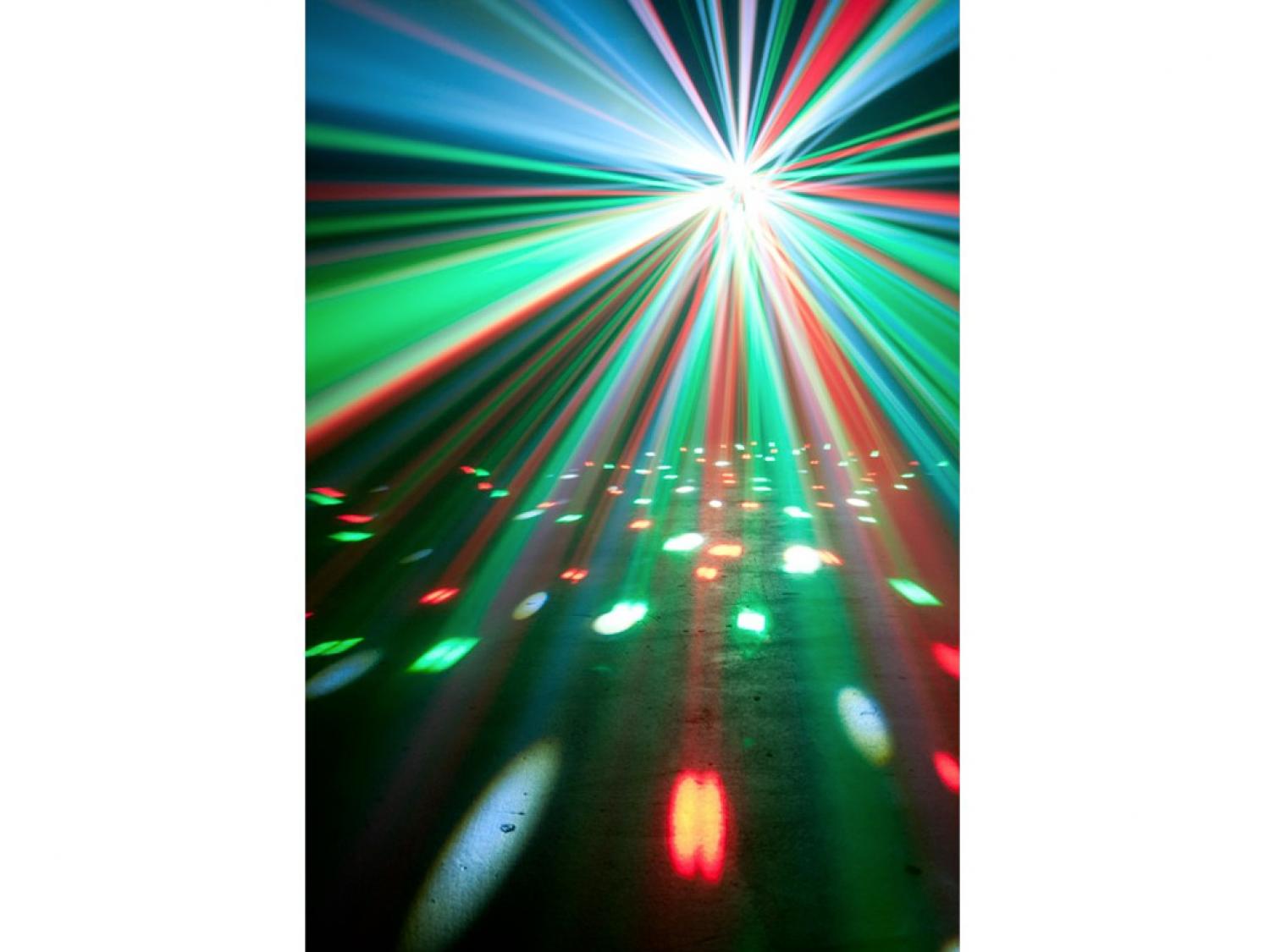 • Dozzine di nitidi raggi colorati riempiono la stanza, la pista da ballo o una parete