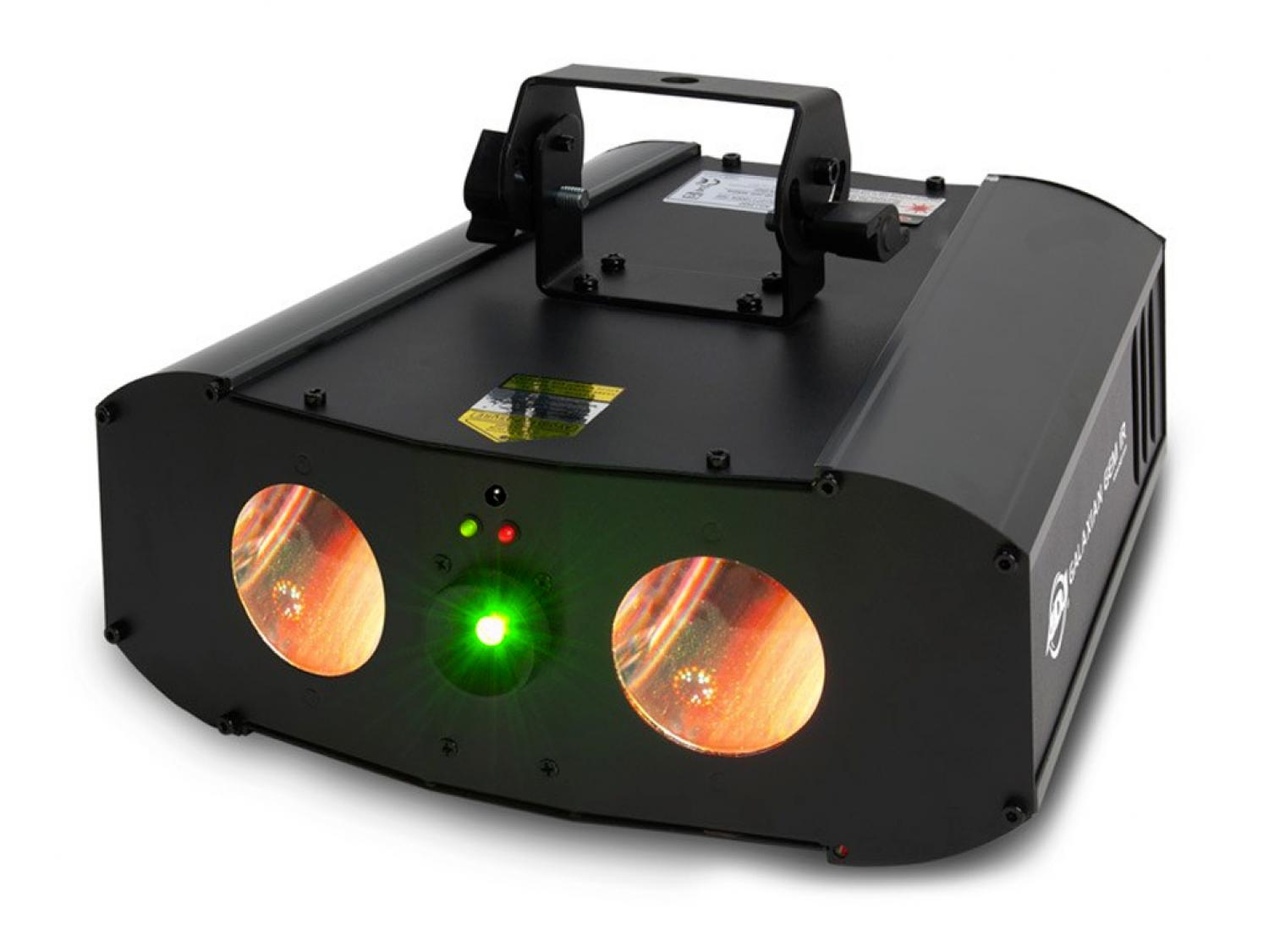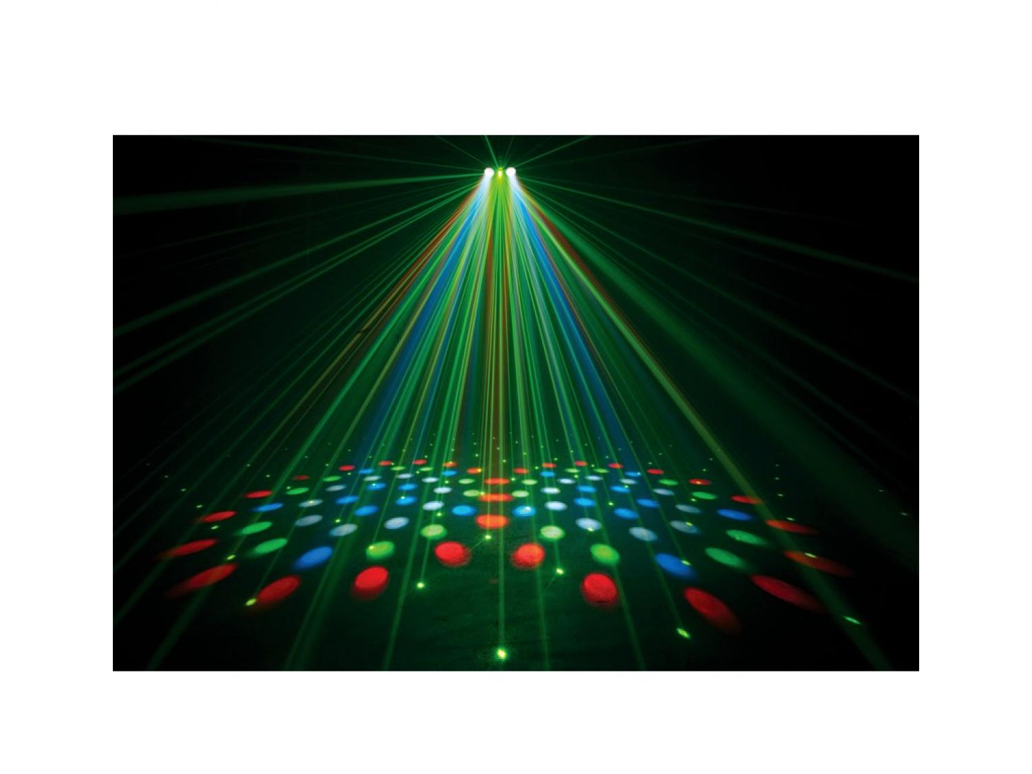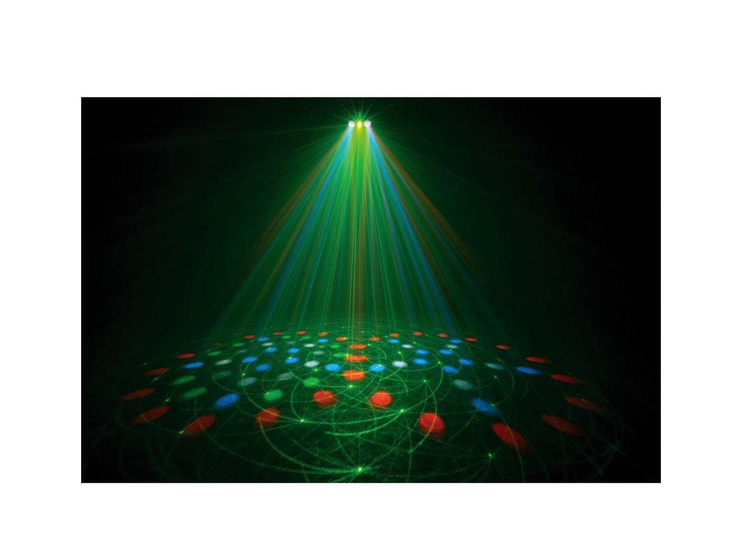 Galaxian Gem IR di ADJ è un effetto 2-in-1. Un doppio Moonflower a LED RGBW, più un effetto stile "Galaxian" con centinaia di fasci luminosi verdi, tutto in un'unica apparecchiatura. Questo effetto luminoso consente a piccoli club ed intrattenitori itineranti di avere a disposizione più effetti luminosi in un'unica unità senza dover trasportare più apparecchiature. Galaxian Gem IR è semplice da utilizzare ed ha 3 modalità di funzionamento: DMX, show e attivazione musicale. Inoltre, può funzionare in modalità master/slave. Galaxian Gem IR è compatibile con il telecomando UC-IR e con l'app Airstream IR (vendute separatamente). UC-IR e Airstream IR possono controllare diverse funzioni del proiettore.