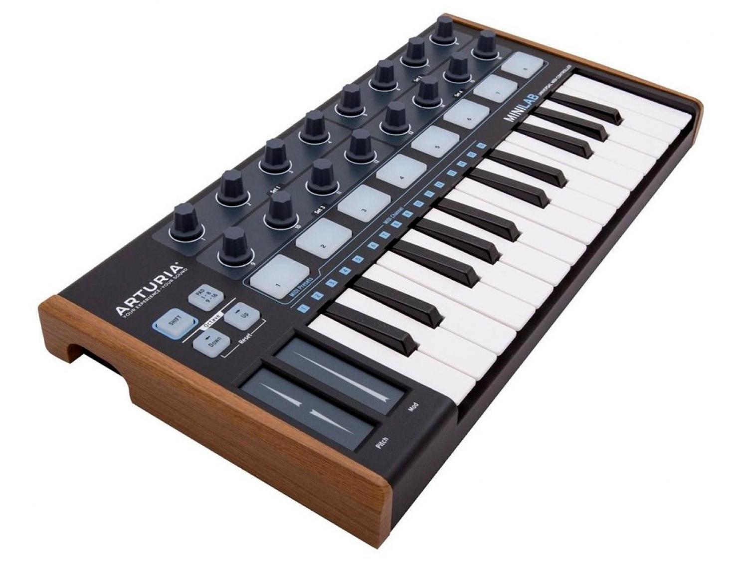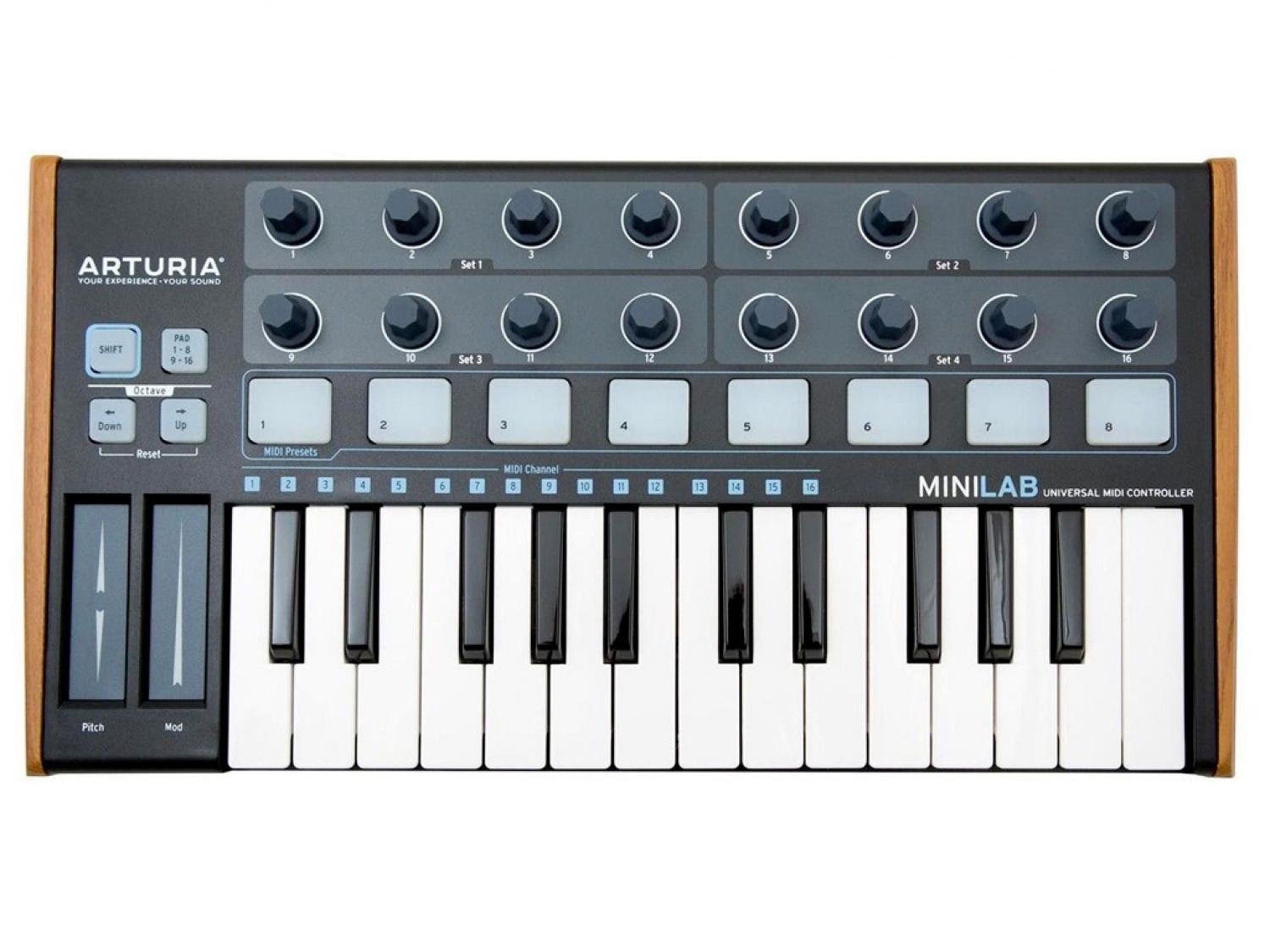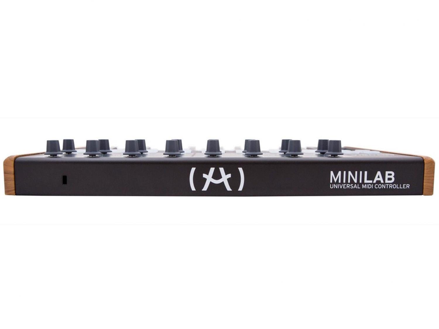 Il MiniLab di Arturia è un controller MIDI universale che unisce al meglio le funzionalità di controllo con lo stile e la portatilità necessaria per trasportare il vostro studio "on the road". Nonostante il design ultra compatto include già moltissime funzionalità, con ben 5000 suoni dei migliori synth analogici. MiniLab può sicuramente trovare spazio in ogni situazione, dal più piccolo home studio al più grande studio di produzione musicale. Minilab è sicuramente uno dei sistemi nella sua categoria con il più alto numero di funzioni. Una tastiera 25 mini tasti velocity sensitive e la nuovissima pitchbend/modulation touch strip consentono di creare melodie di grande impatto in modo semplice ed immediato. I 16 pads retroilluminati (due banchi di 8 pads/pulsanti) consentono di creare ritmiche all'istante, mentre con i 16 encoder rotativi si possono regolare al meglio tutti i parametri del software. Aggiungete a tutto questo l'ingresso per il pedale sustain e la porta USB bus-power, e avrete la soluzione mobile ideale per la produzione musicale.