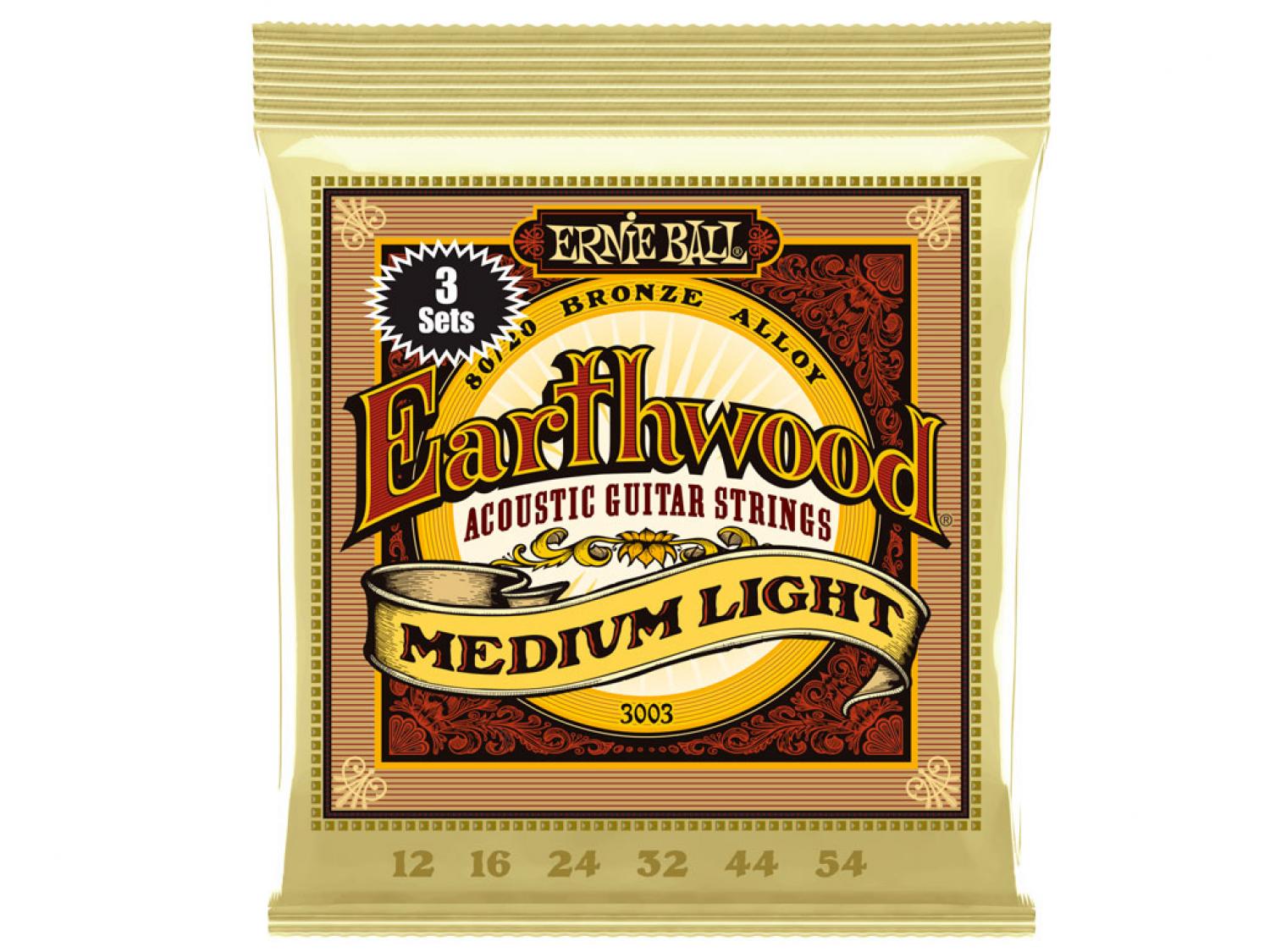 ERNIE BALL 3003 Earthwood 80/20 Bronze Medium Light 12-54 (3 Pack)
