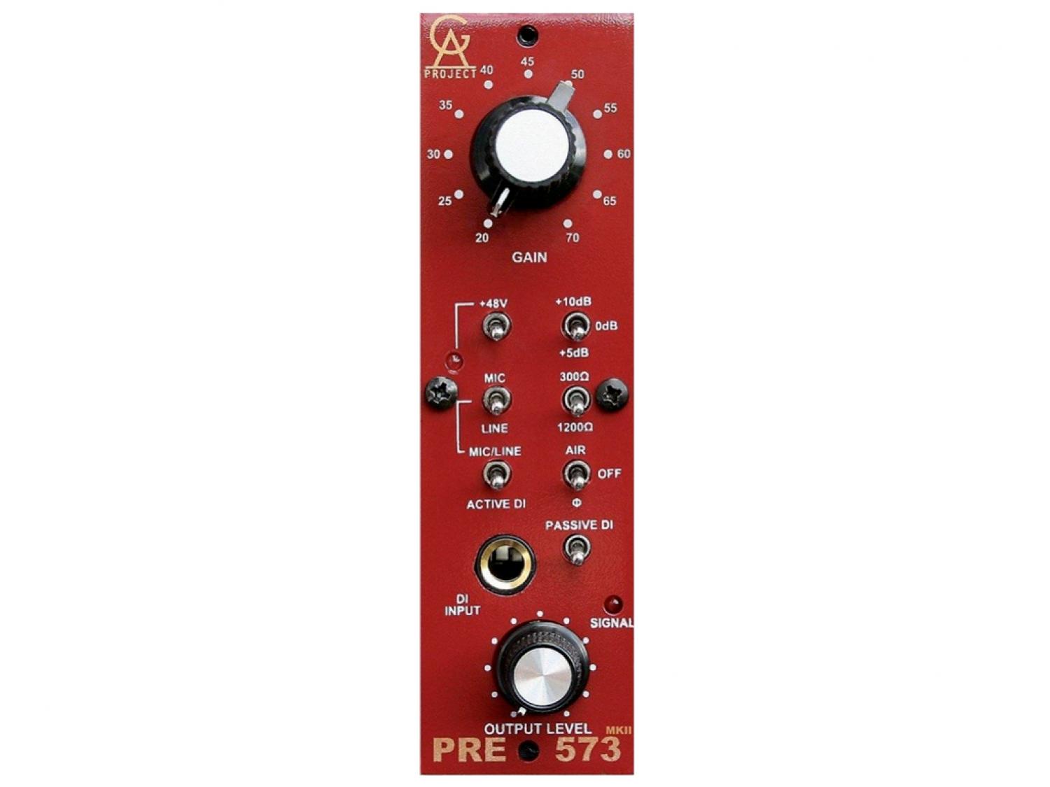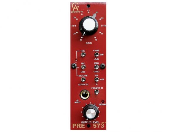 PRE-573 MKII di Golgen Age Project è un preamplificatore in formato serie 500 di altissima qualità, costruito esclusivamente con componenti discreti come resistenze, condensatori e transistor, e dotato di 2 trasformatori indipendenti ottimizzati. Equipaggiato con un circuito molto simile alla sezione di preamplificazione del celebre Pre/EQ Neve 1073, PRE-573 MKII è in grado di riprodurre le calde sonorità vintage, molto ricercate oggi, che rendono registrazioni di voci e strumenti estremamente piacevoli all'ascolto. PRE-573 MKII è perfetto per qualsiasi sorgente sonora, non importa sia essa un microfono, un sintetizzatore, una chitarra o un basso elettrico. PRE-573 MKII offre un guadagno massimo di 80dB sull'ingresso microfonico, nonchè la possibilità di utilizzare sorgenti di linea o ad alta impedenza per strumenti. L'impedenza dell'ingresso microfonico è regolabile a 300 o 1200 Ohm, rendendolo perfettamente accoppiato con la maggior parte dei microfoni. E' inoltre presente un pulsante phantom power 48 V, un pulsante per l'inversione di fase, un ingresso DI attivo con lo stesso circuito presente nel celebre PRE-73 DLX e impedenza di 1,5M Ohm, un interruttore AIR mode che aggiunge un boost di 6dB sopra i 30kHz. Il controllo del livello di uscita consente una regolazione precisa del guadagno e di caricare lo stadio di amplificazione principale per dare maggior carattere al suono senza provocare distorsioni del segnale. Rispetto alla precedente versione, PRE-573 MKII include un nuovo interruttore Gain migliorato, un alimentatore più silenzioso, un circuito di accensione con avvio graduale che evita i picchi di tensioni e alimenta il dispositivo lentamente (circa 10 secondi).