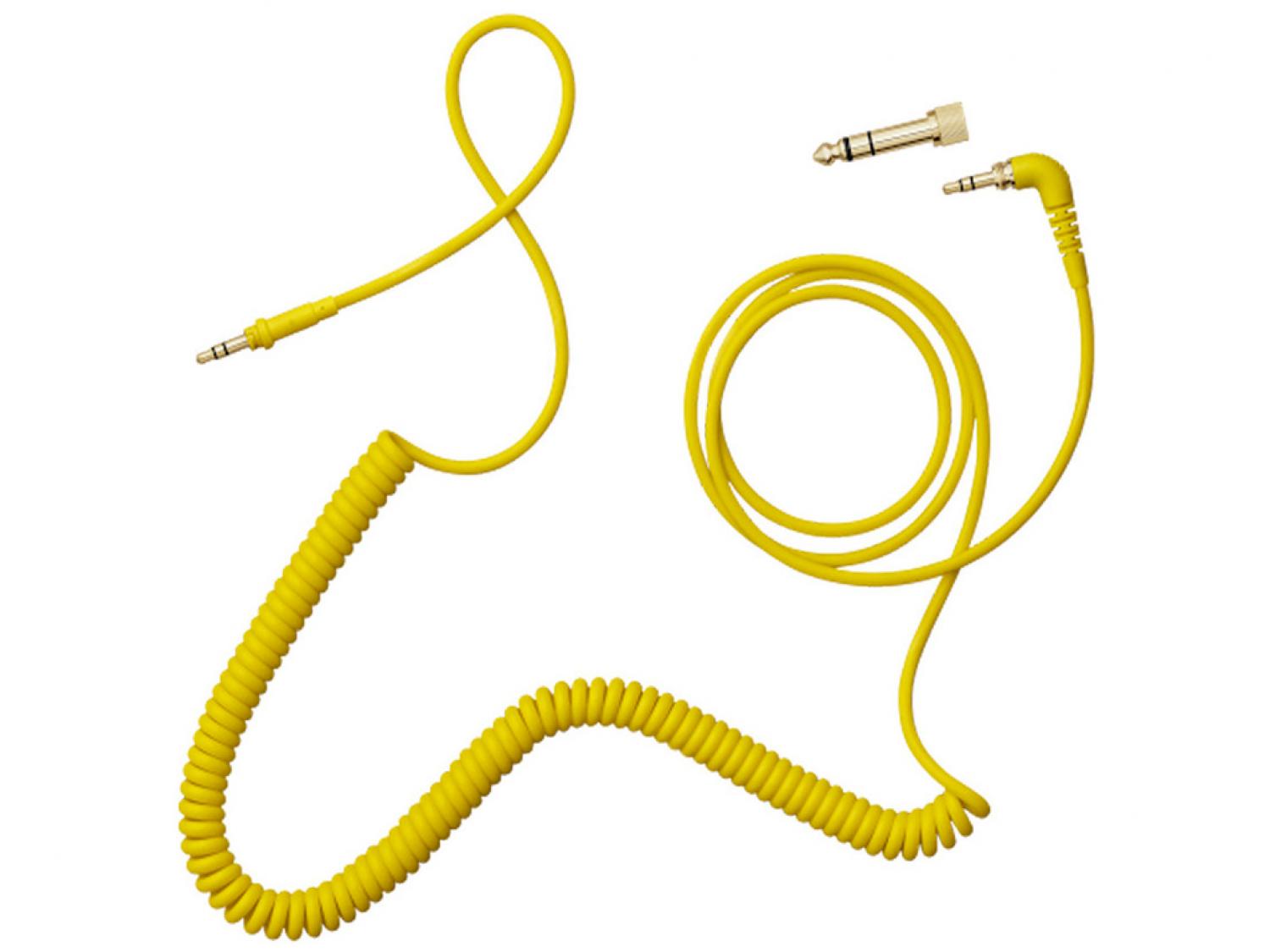 Cavo a spirale in termoplastica gialla 1,5m, superficie soft-touch e può estendersi sino a 3,2m. Ideale per Djing o piccoli studio, viene fornito con adattatore da 1/4" a 1/8" a vite.
