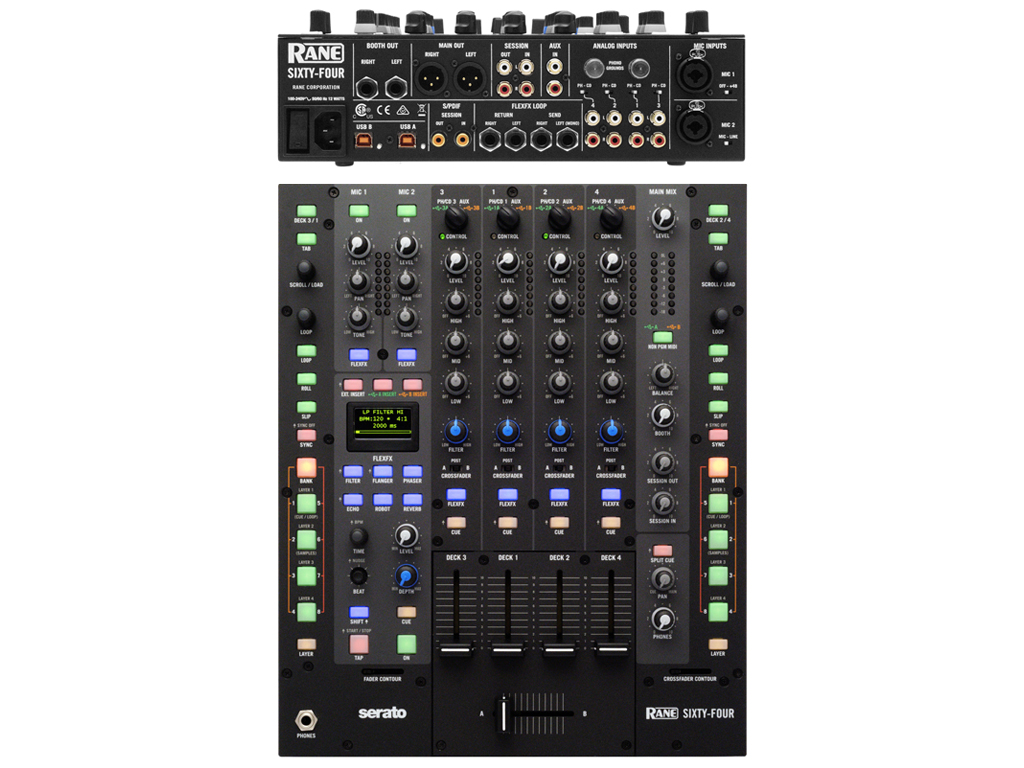 Il mixaggio a quattro canali richiede una vasta gamma di effetti di transizione sorprendenti, la possibilità di sincronizzare le tracce, funzionalità CUE e Loop più flessibili e funzionalità di trasporto e mixaggio più versatili. Il mixer Rane Sixty-Four ad il software Serato DJ forniscono il pacchetto plug-and-play più recente, fornendo tutto ciò che serve. Il mixer e il software diventeranno subito familiari e intuitivi, fornendo le funzioni avanzate che si richiedono per intensificare le proprie performance. Tutti i popolari programmi DJ e DAW possono utilizzare il Sixty-Four come una scheda audio 12-input & 10-output grazie ai driver ASIO e Core Audio inclusi. Le due porte USB sono indipendenti, in modo che due DJ possano condividere il mixer, e ognuno di essi può utilizzare un programma diverso se preferisce.